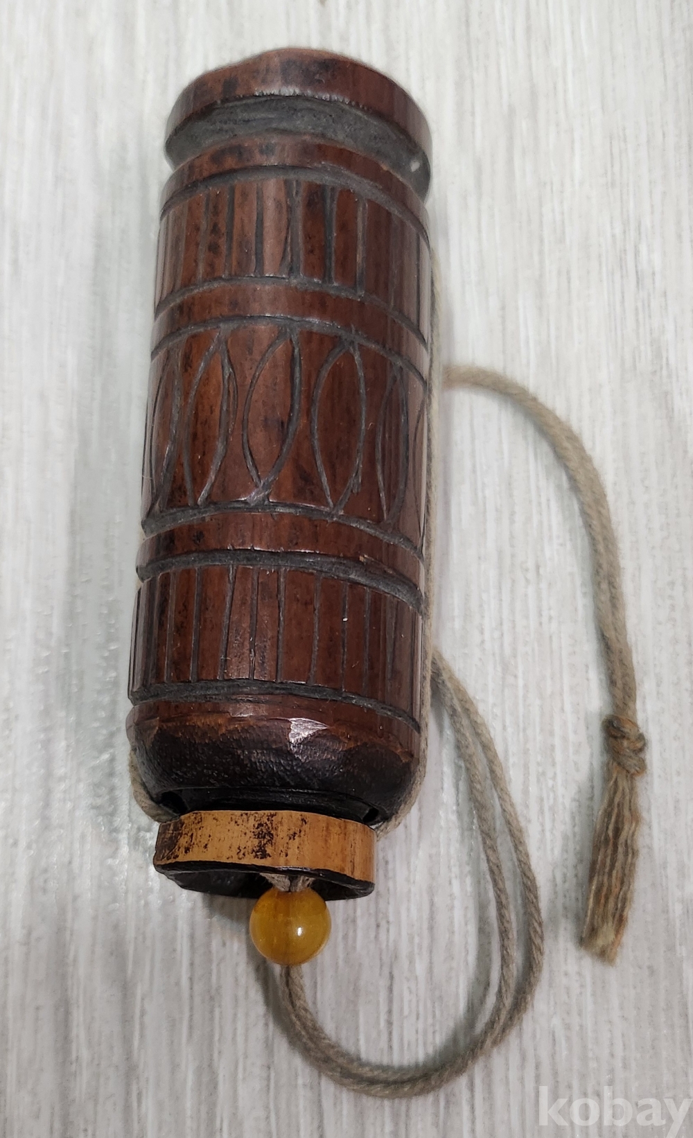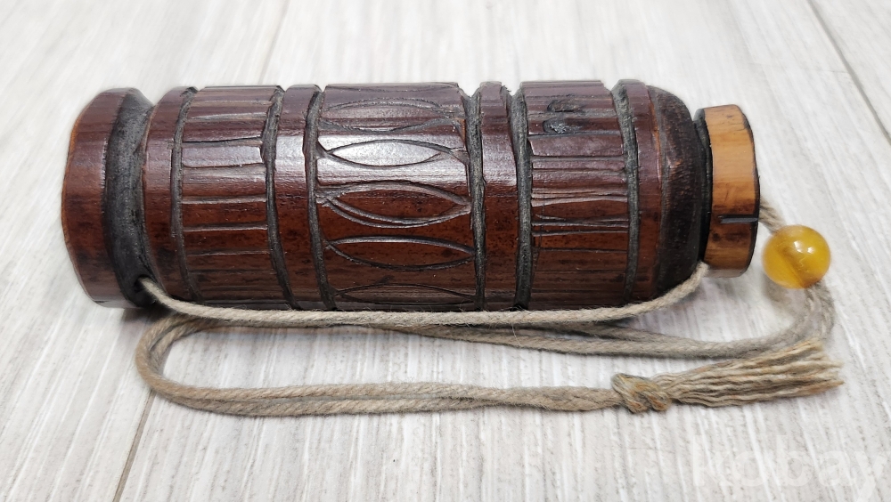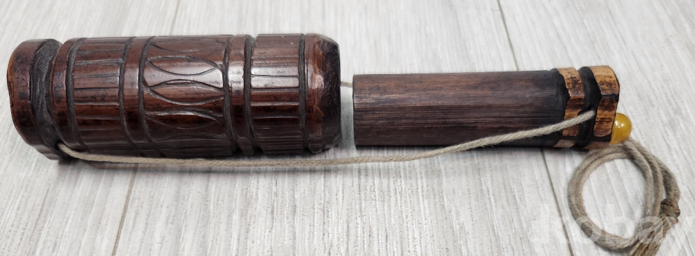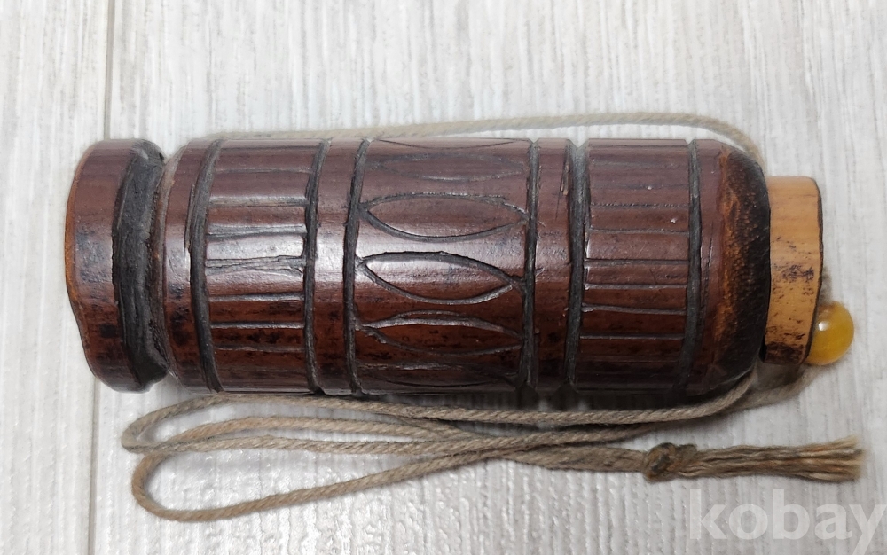 선조들이 사용한 오래된 침통 입니다 재질은 대나무 입니다 삼등분으로 나누어 조각이 되어 있습니다 조리개 노란색 구슬은 천연옥돌 입니다 오랜세월로 자연 때물이 아름답습니다 사진 참조바랍니다