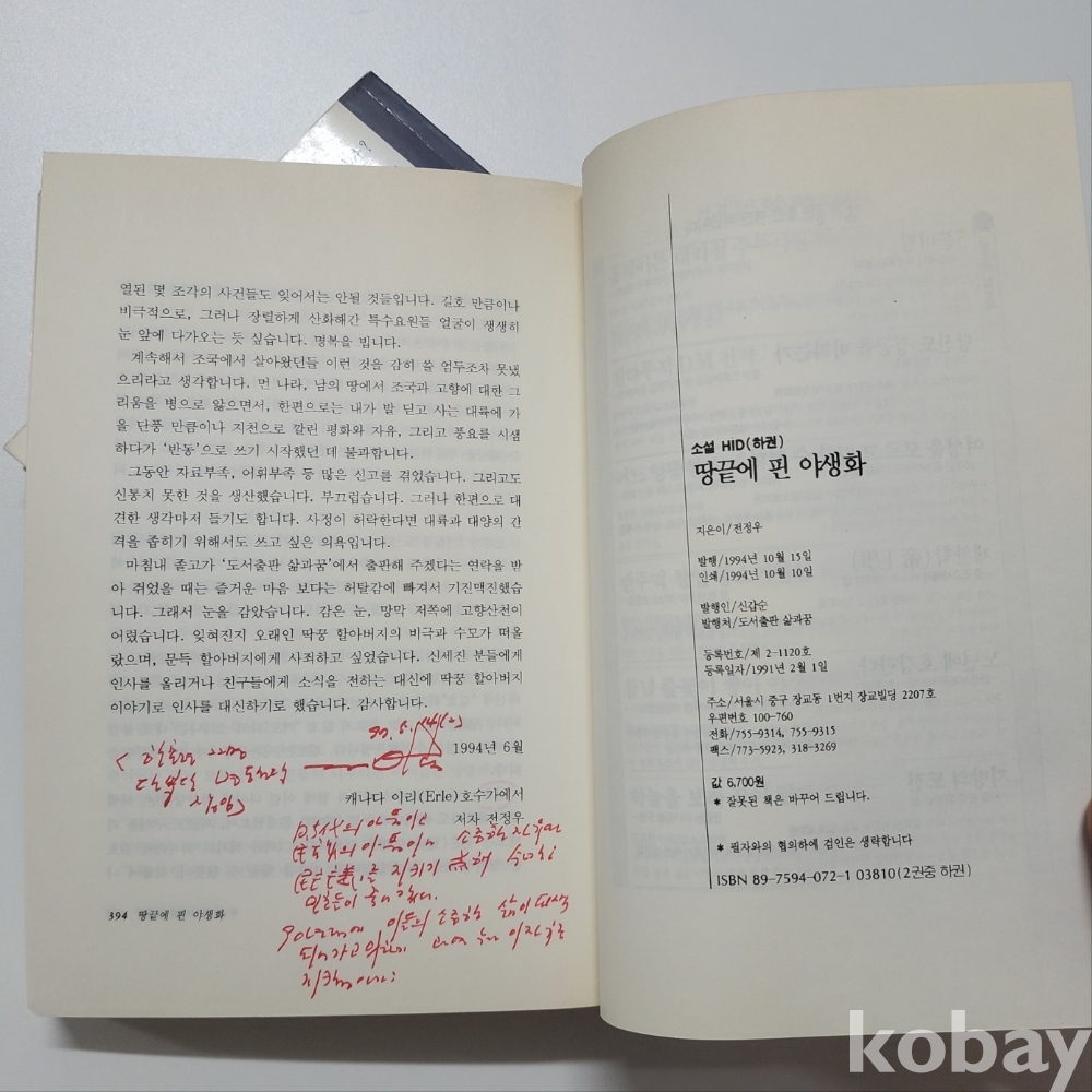 [천원경매] 땅끝에 핀 야생화 (전정우/삶과꿈 1994년) : 중급, 간헐적 밑줄/서고-만06