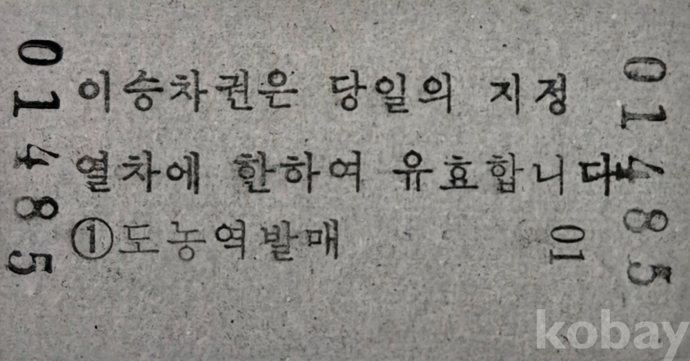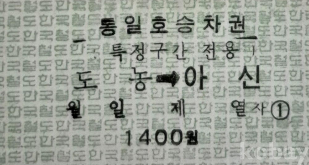 통일호 특정구간 승차권 도농-아신 일반입니다.