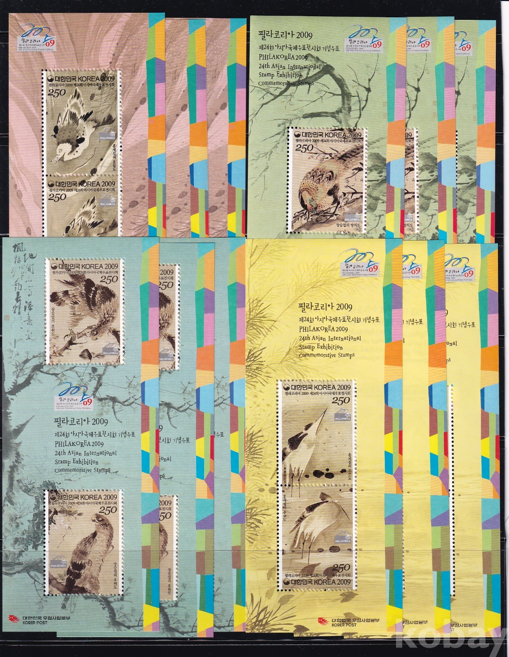 - 미사용 필라코리아 2009년 제24회 아시아국제우표전시회 시트 4종 12종 모음