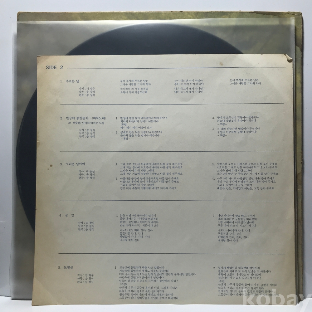 | 자켓상태 | EX : 약간의 마모, 모서리 찢김 존재 | 음반상태 | VG : 생활 기스 다수, 가벼운 노이즈 존재 | 발매정보 | 알수없음 | 가사지여부 | 무 |
