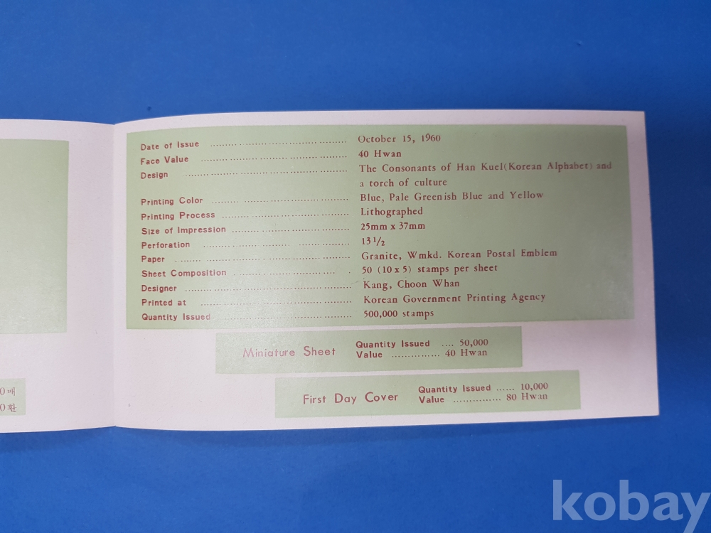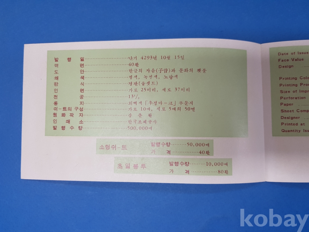 **** 문화의달 기념우표/4293.10.1-31/대한민국 체신부