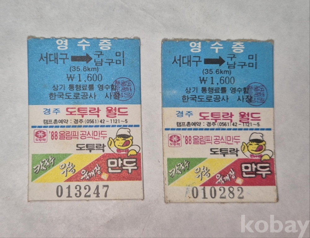 88년 '서대구~구미/남구미' 고속도로 영수증입니다.