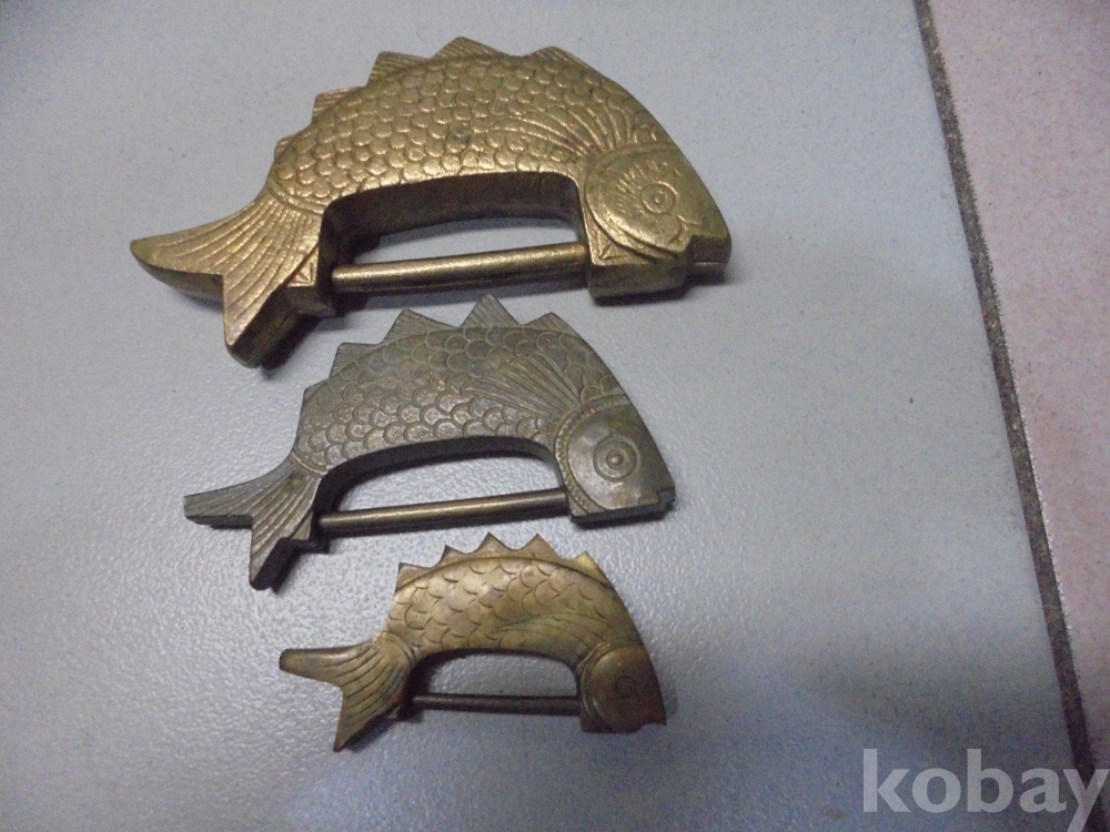 편하게만들었고 작은것은 열쇠가없는 유기 붕어자물쇠 3점 큰것 가로세로높이 16 x 9 x 3 cm 외사진참조