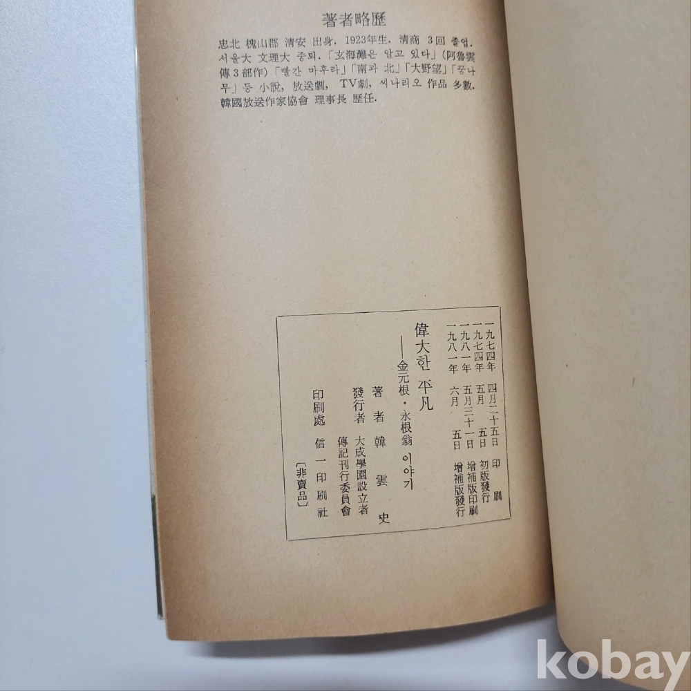 [천원경매] 위대한 평범 (김원근 영근선생 이야기/ 한운사 1981년) ; 중급