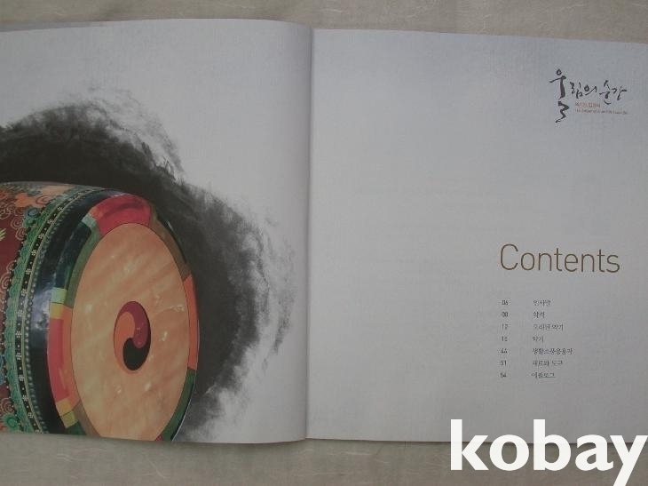 앞에 대전무형문화재 제12호 악기장(북메우기) 김관식의 프로필이 있다. 북메우기에 대한 설명부터 오래된 악기로 60~80년대의 북과 이후 여러 북종류들을 수록하였다.