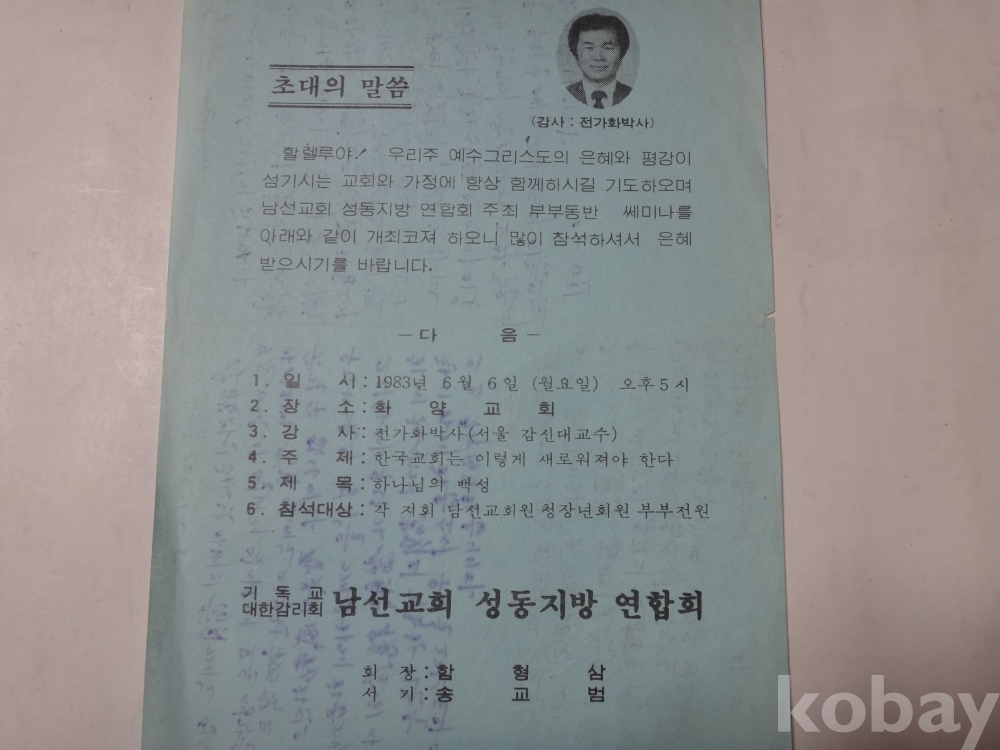 남선교회 성동지방 연합회 주최 부부동반 쎄미나 - 초대의 말씀, 뒷면 설교안 요약 (1983년, 강사 전가화 박사)