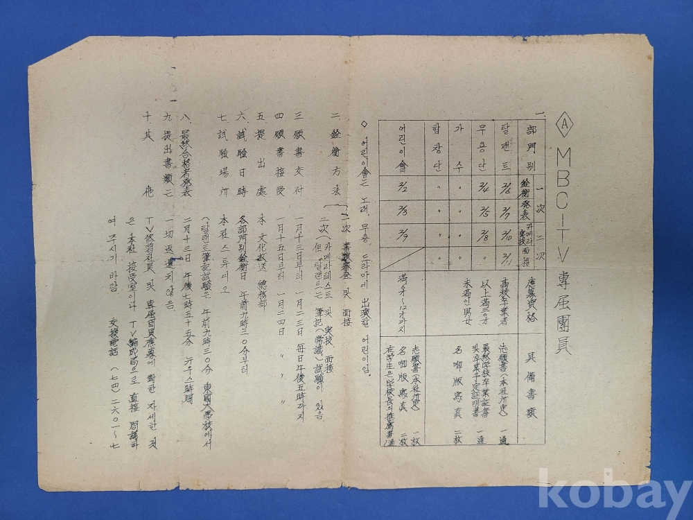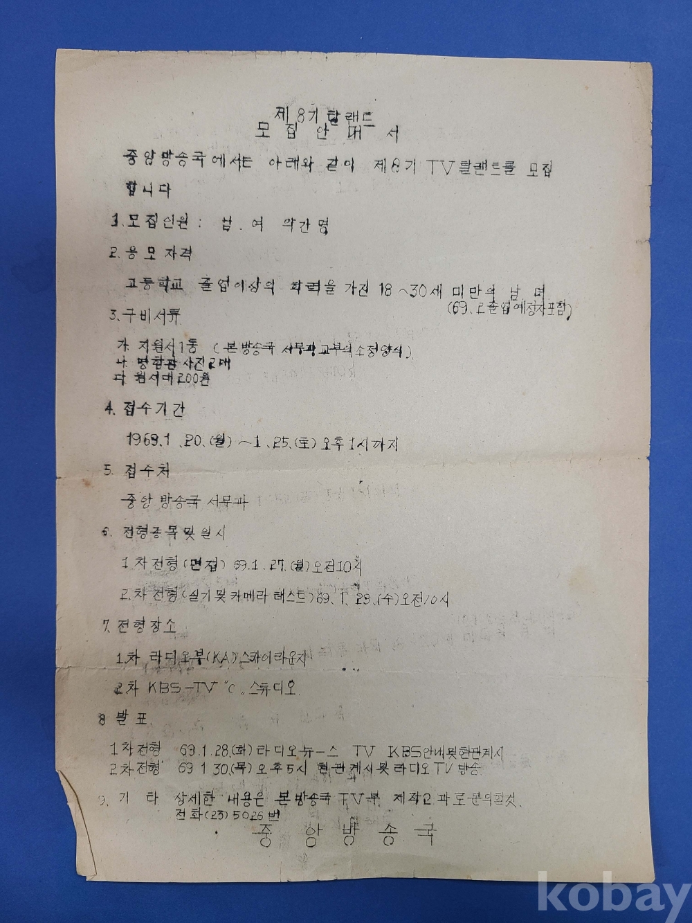 [배우.탈렌트] 중앙방송국 제8기 탈랜트 모집안내서,MBC-TV전속단원,한국배우전문학원,