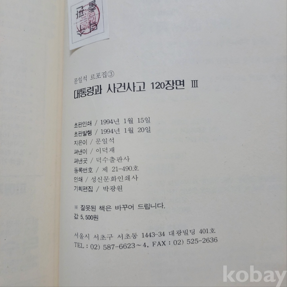 [희귀본] 대통령과 사건 사고 120장면 전3권 세트 (94년 초판) : 중급/서고H02