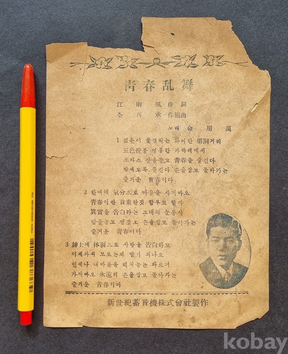 ro-37 / 해방전 ~일제강점기 오리지널 sp음반 (돌판) 가사지 (희귀 돌판 가사지) "푸른종달새"