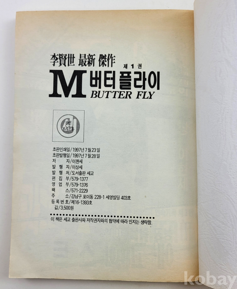물 품 명 | 이현세 / M 버터플라이 (1~5)완결 총5권 / 1997년 초판 / 도서출판 세교 |