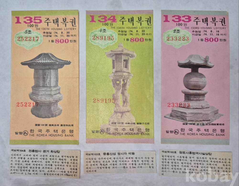 주택복권 제133, 134, 135회 및 당시 신문 스크랩입니다.