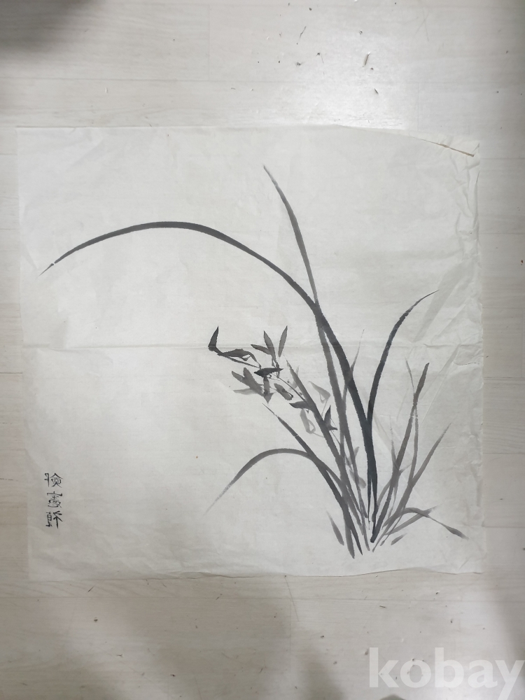 {천원경매} Y-11.0900 난 그림(69*69, 찢어진 부분 있음, 접어서 배송)