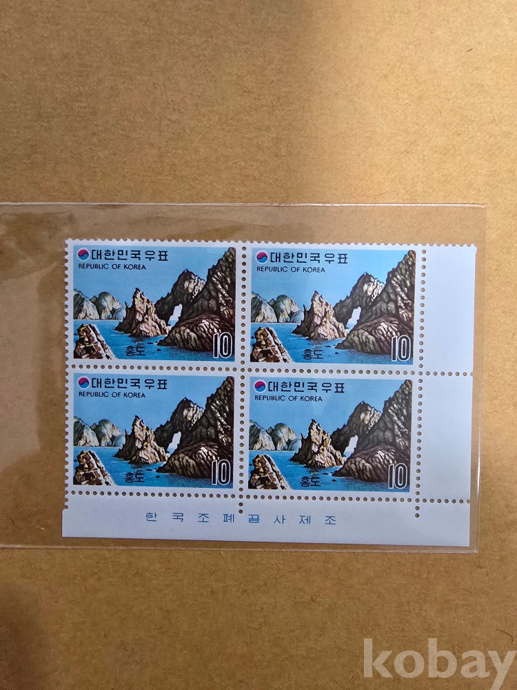 미사용 명판우표 73'8.20제2차관광시리즈 4집 홍도