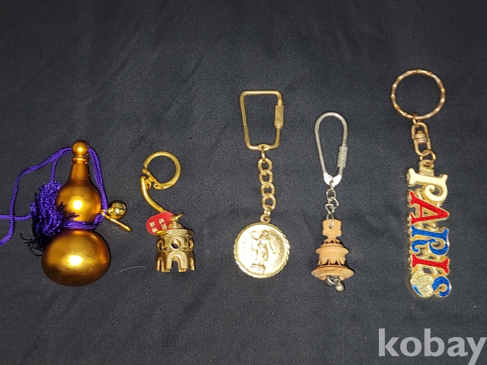 빈티지 파리 키링, 밀라노 두오모 성당 키링, 호리병 키링 등 각종 기념 열쇠고리 5종 일괄입니다.