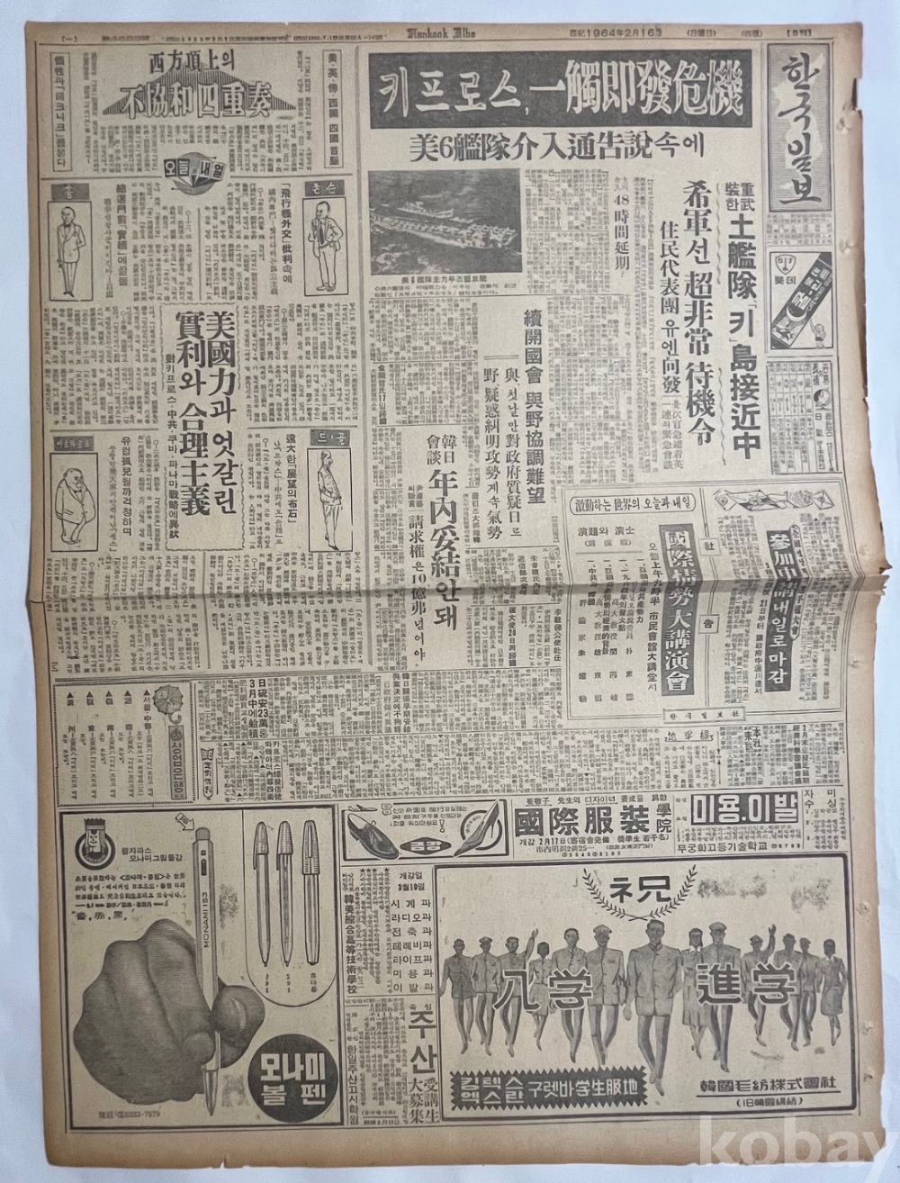 모나미 볼펜 광고가 실린 한국일보 낱장입니다.