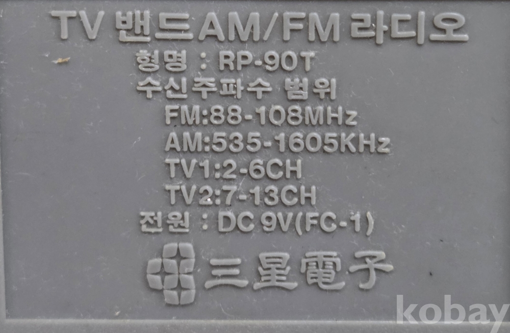 품 명 | 동작하고 상태 좋은 삼성 AM/FM/TV1/TV2 4밴드 라디오 ***RP-90T*** |