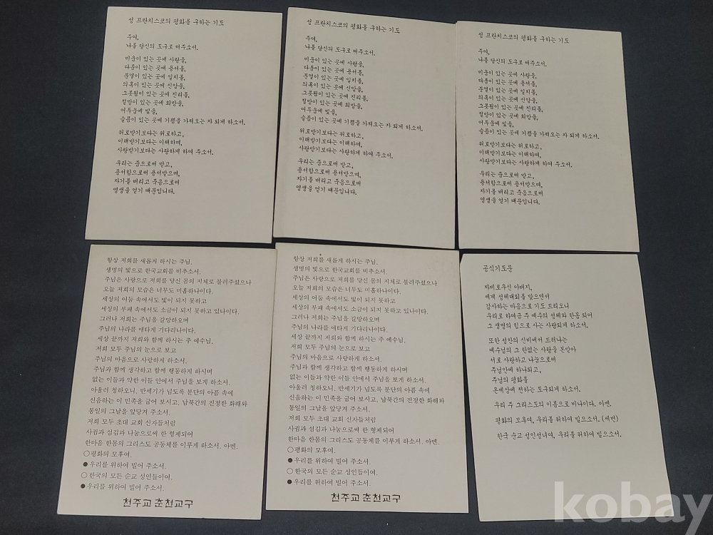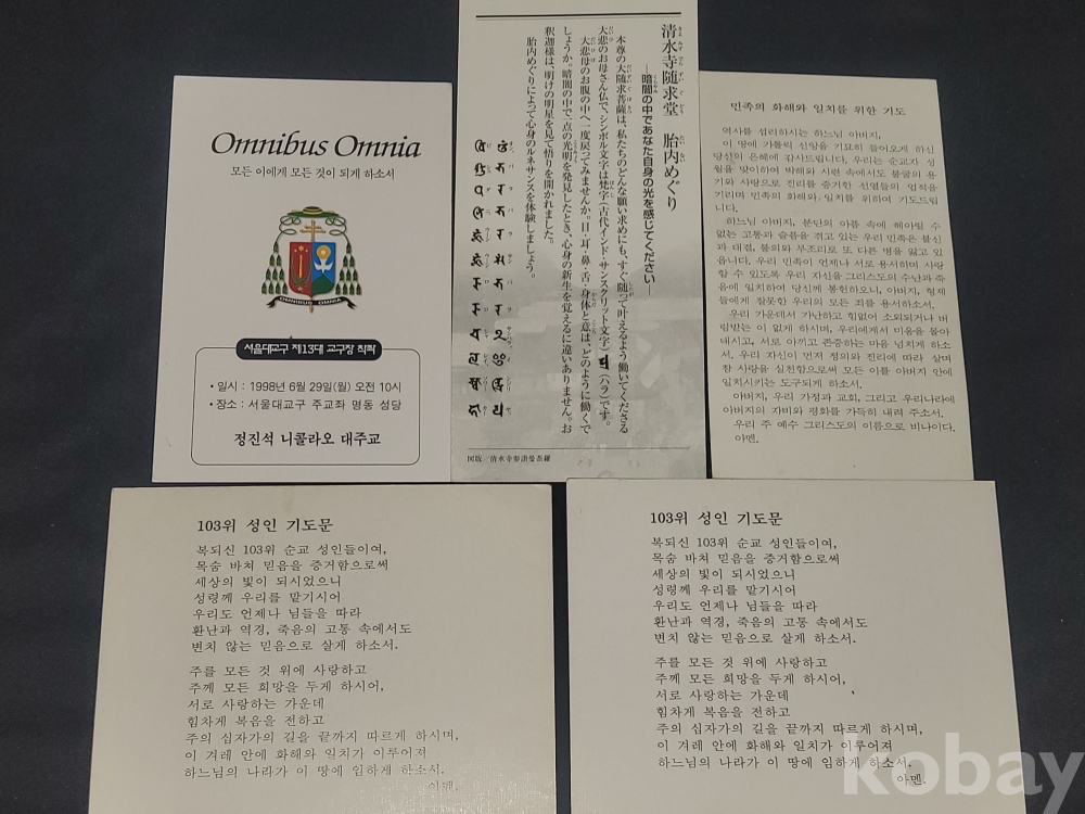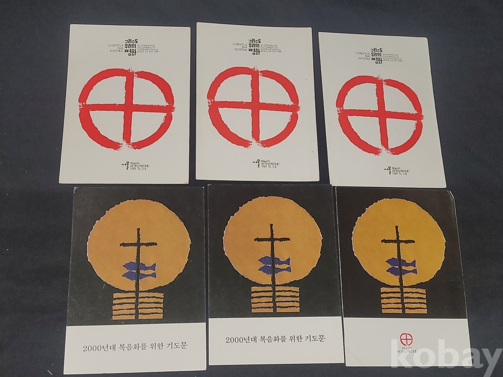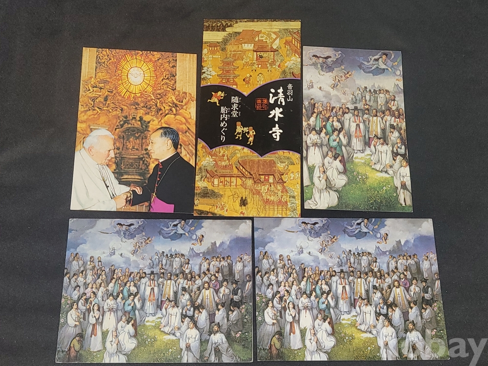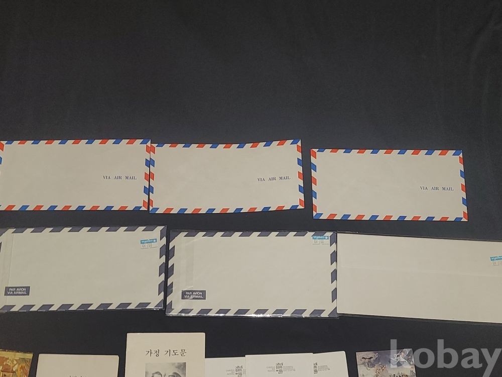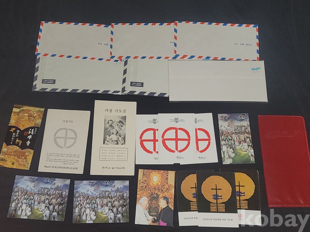 빈티지 세월 감이 느껴지는 여권 커버(?)로 보이는 것과 편지봉투, 교회 관련 그림 카드, 팸플릿 등 잡화 일괄입니다.