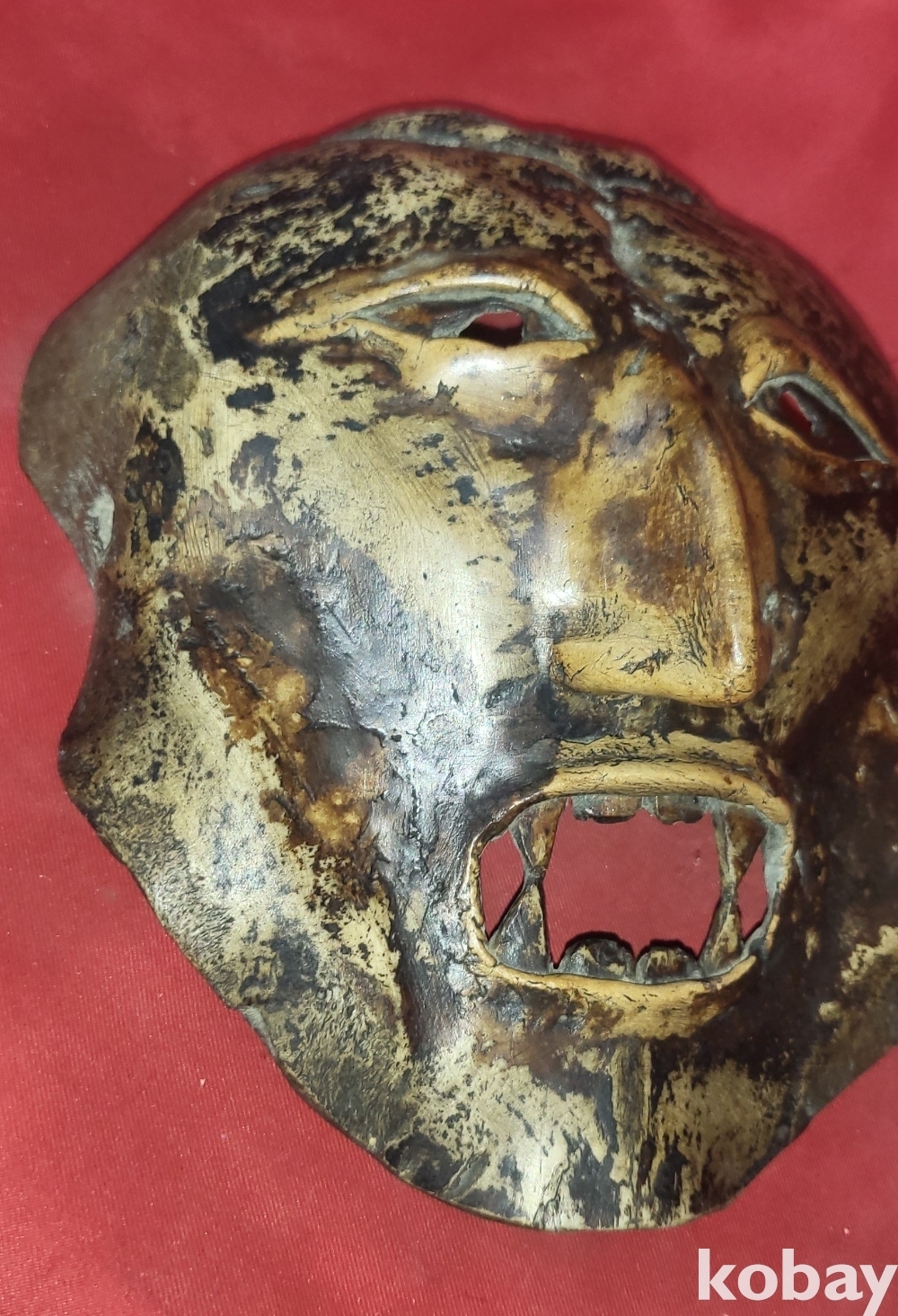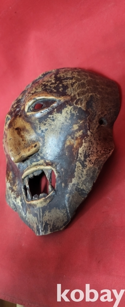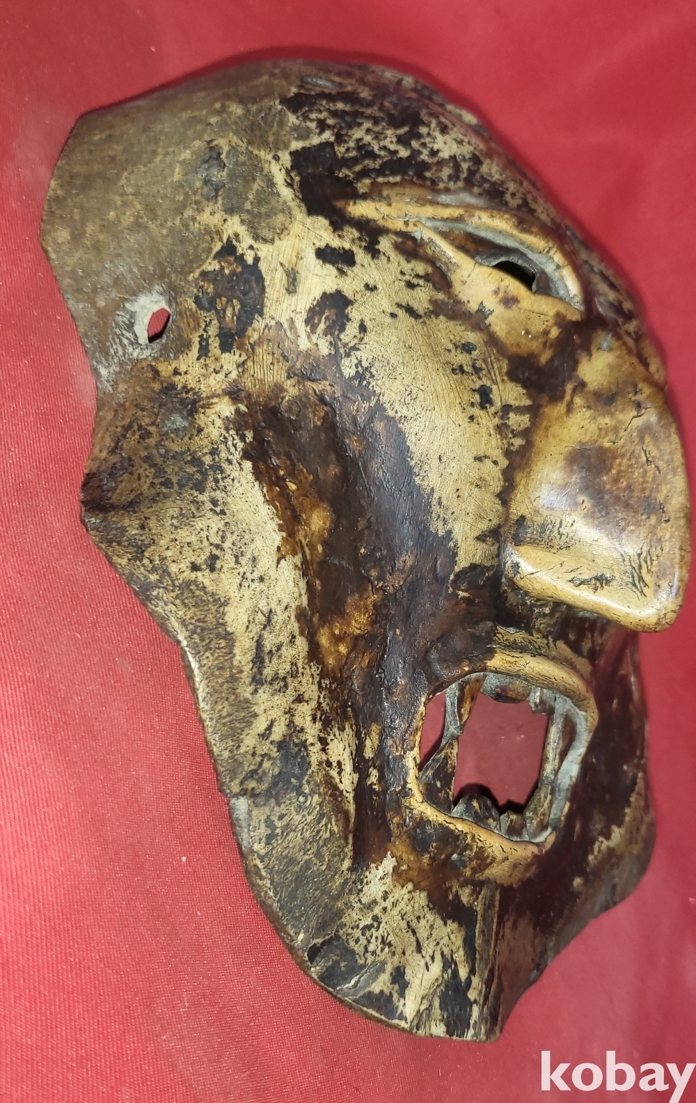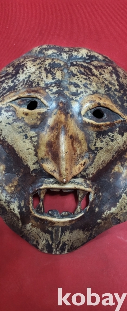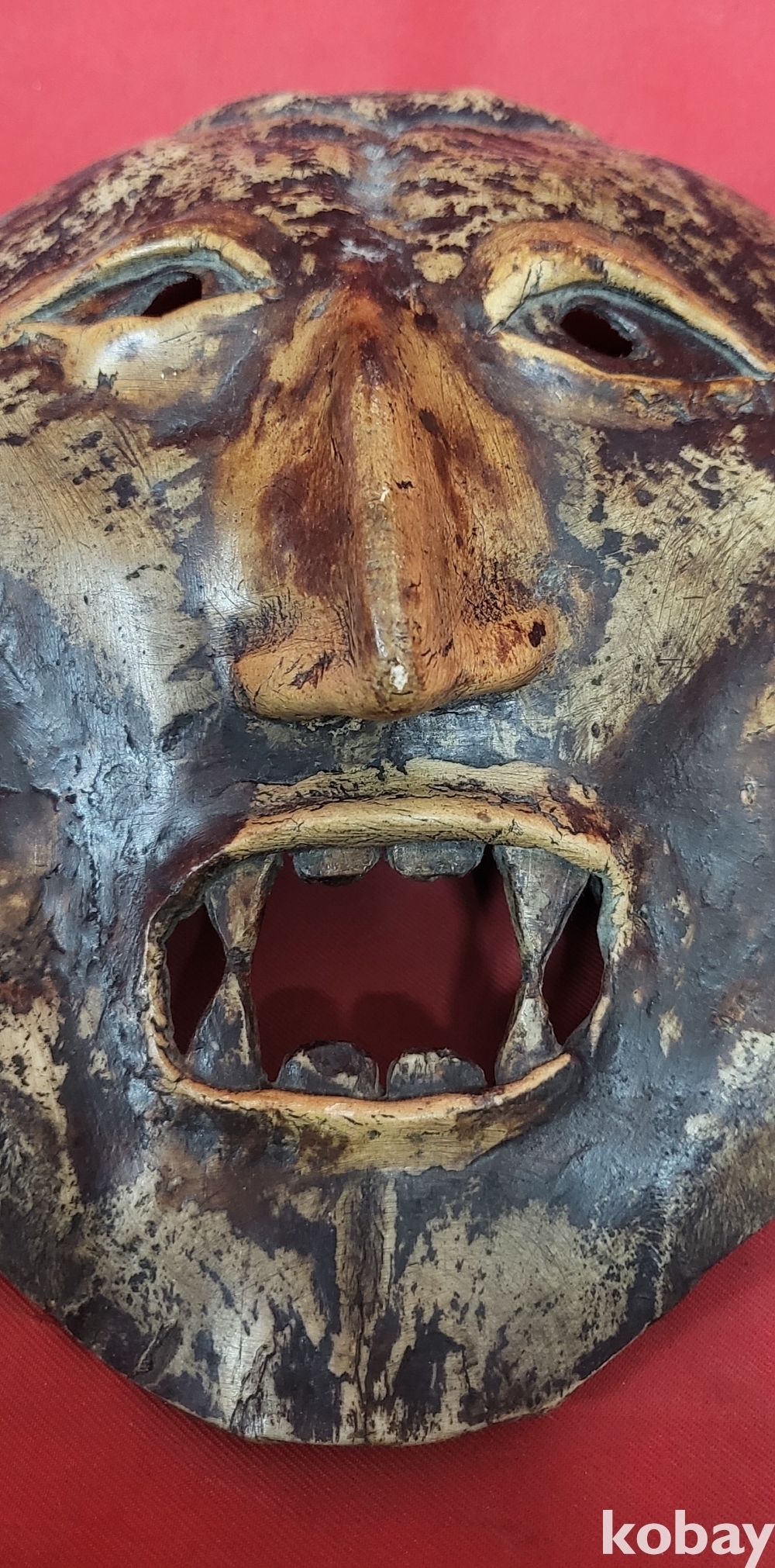 이어 붙임이 없이 통으로 조각되어 완성된 매우 특별한 가면입니다,