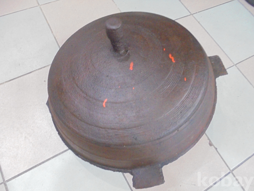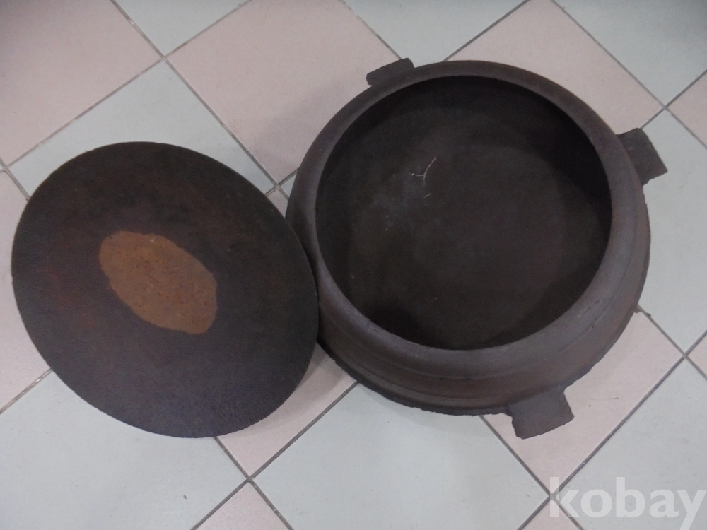 무쇠솥이 오래되여 두터워 무겁고 녹이있으나 철수세미로 닦으면 사용할수있는 한쪽귀가 일부 부러진외는 온전한 귀해진 무쇠솥