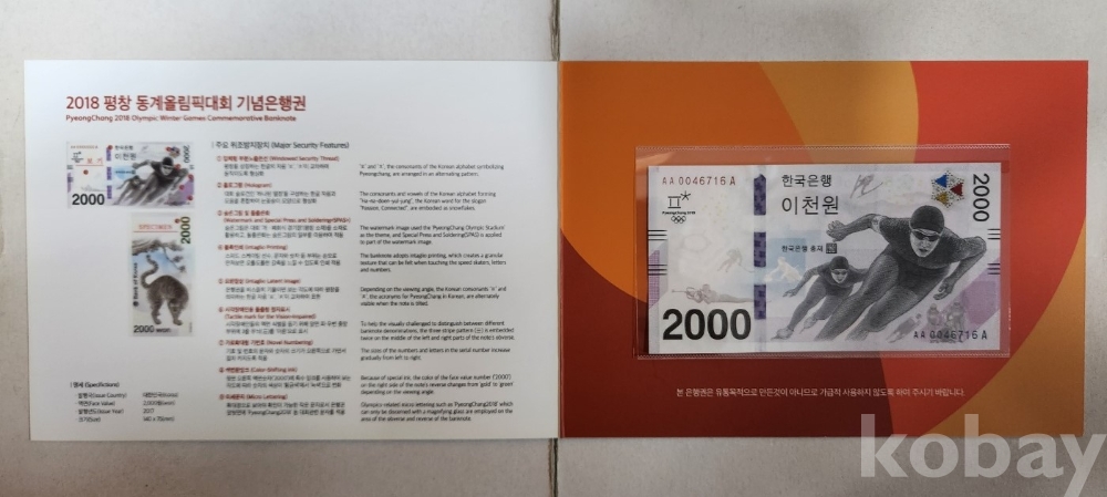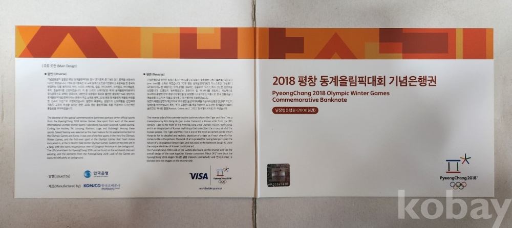 -대한민국 평창동계 올림픽기념 지폐첩 초판 AAA004포인트 입니다.