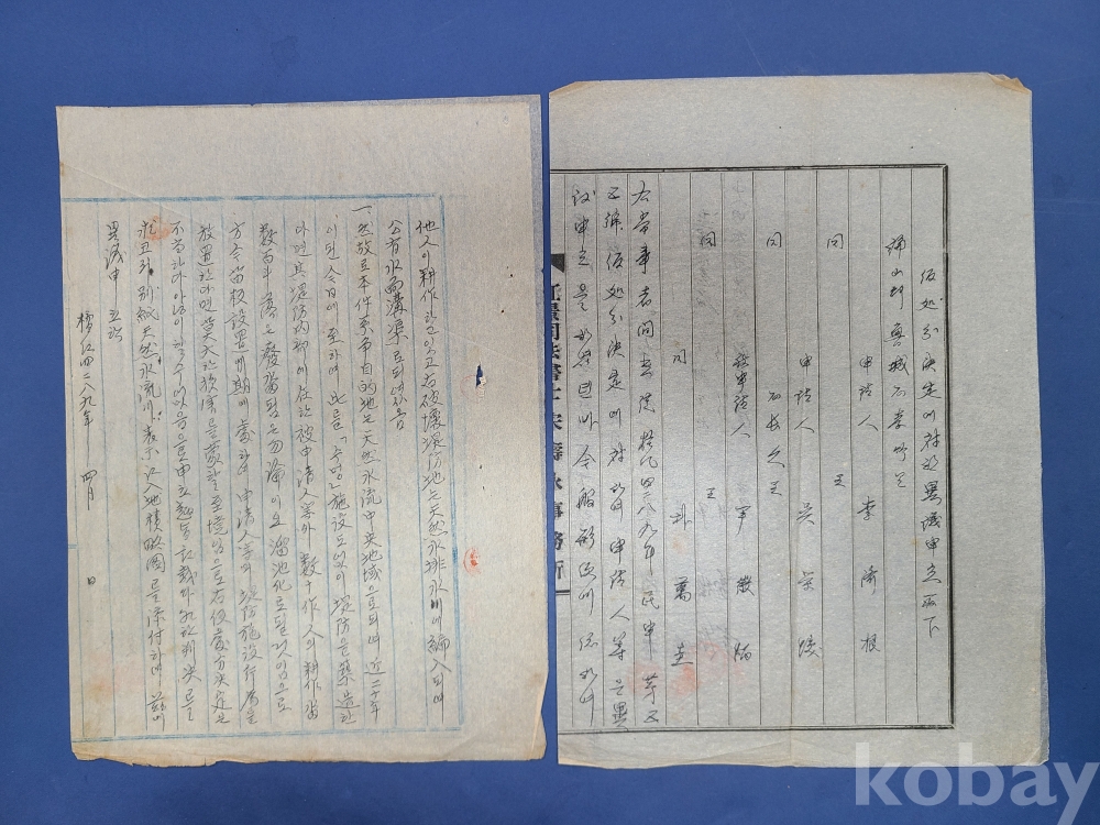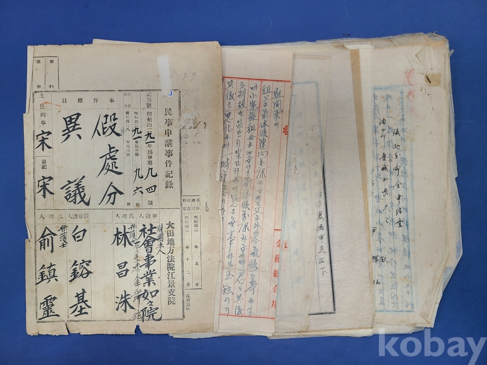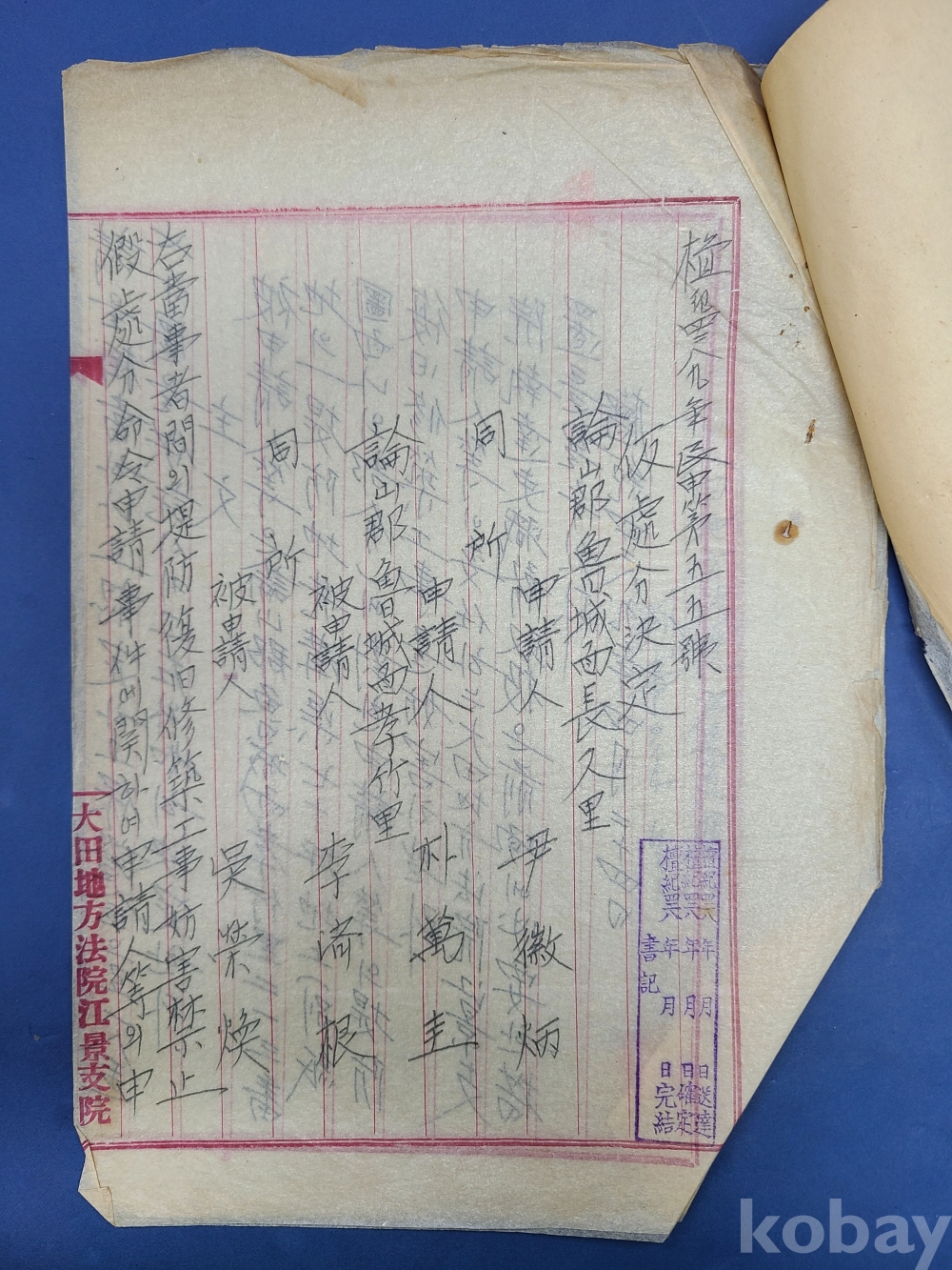 1950년대 충남 논산군 노성면 제방복구축조공사 관련 소송서류 일괄 소장,가처분결정,도면,공시최고