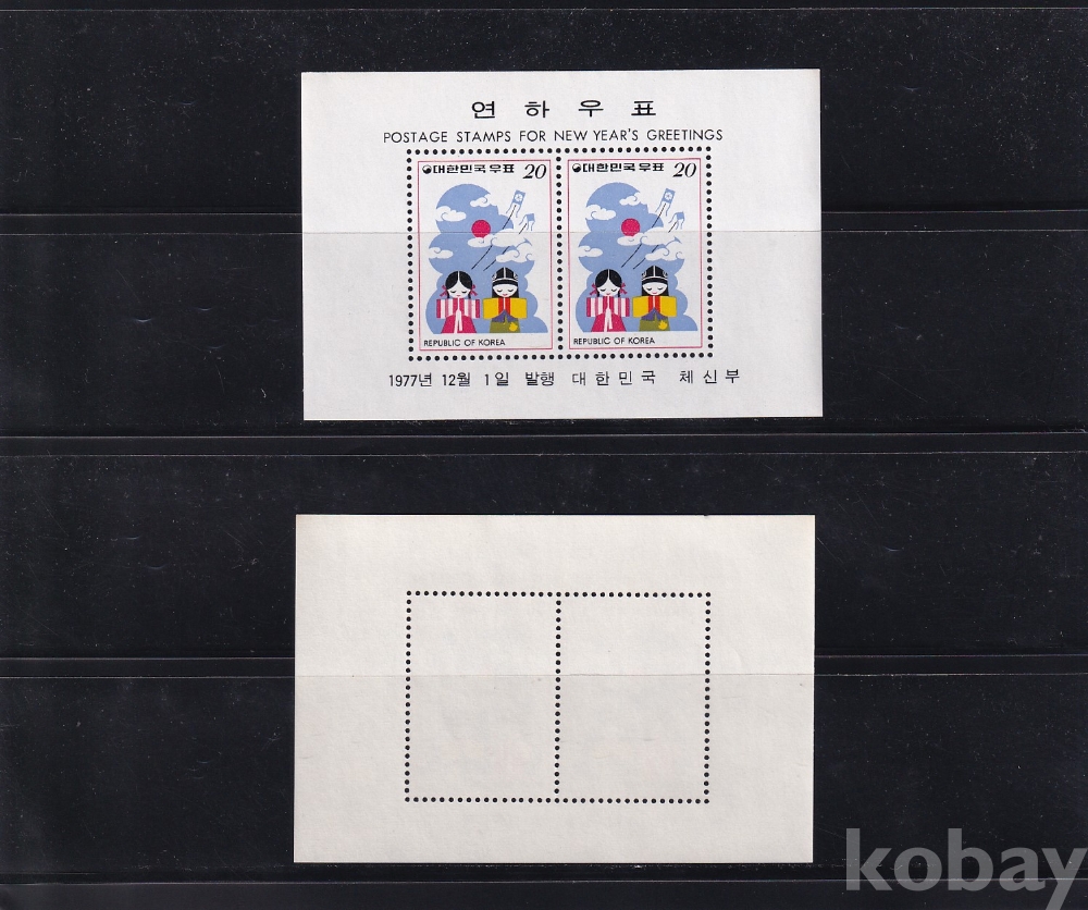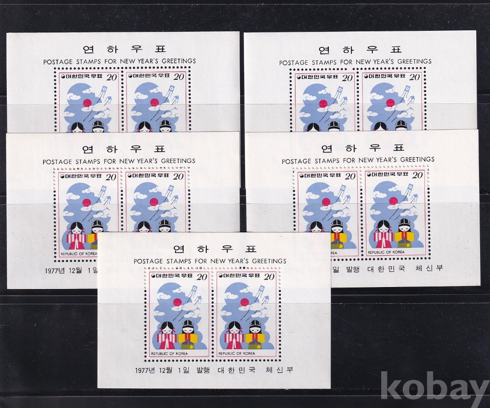 - 미사용 1978년용 연하우표 세배하는 어린이 시트 5장 일괄