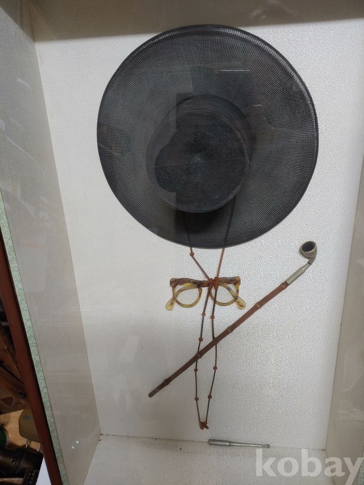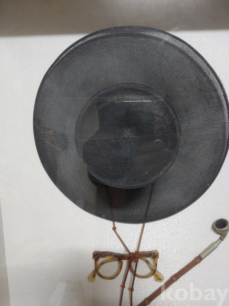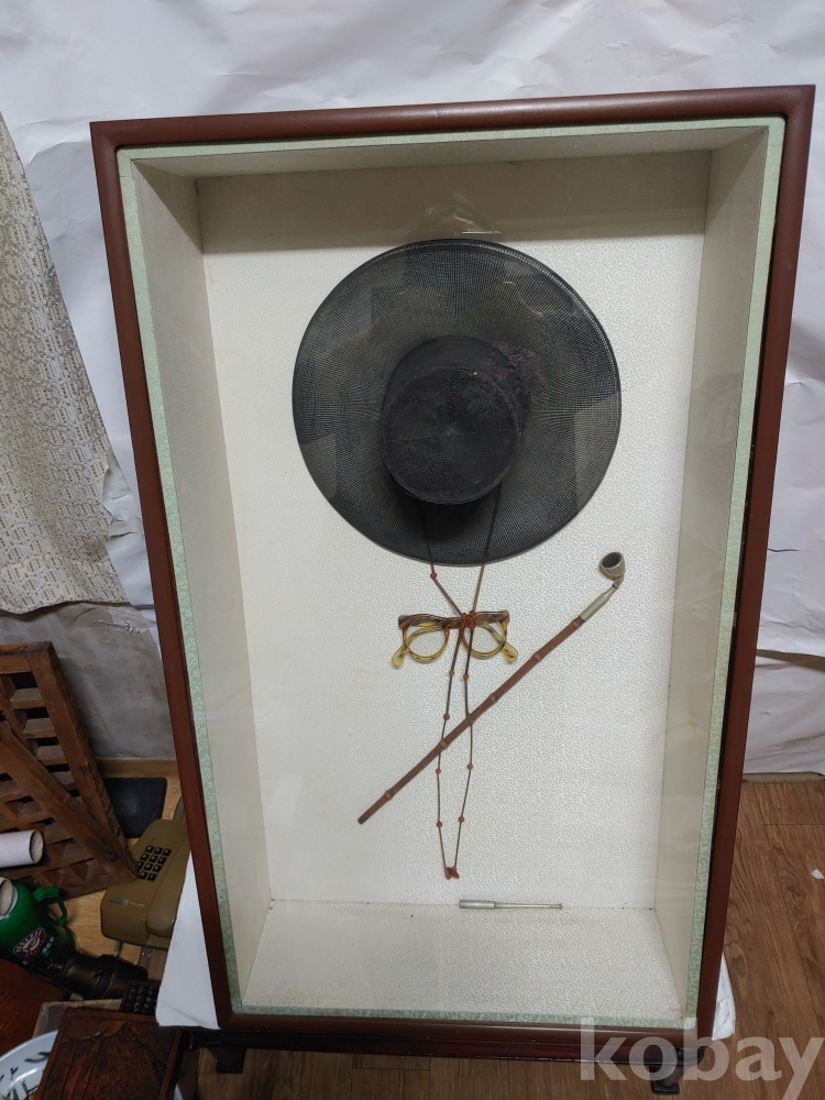 ""옛날 말총 갓과 탕건과 갓줄과 뿔테안경과 곰방대 담배대 일습""