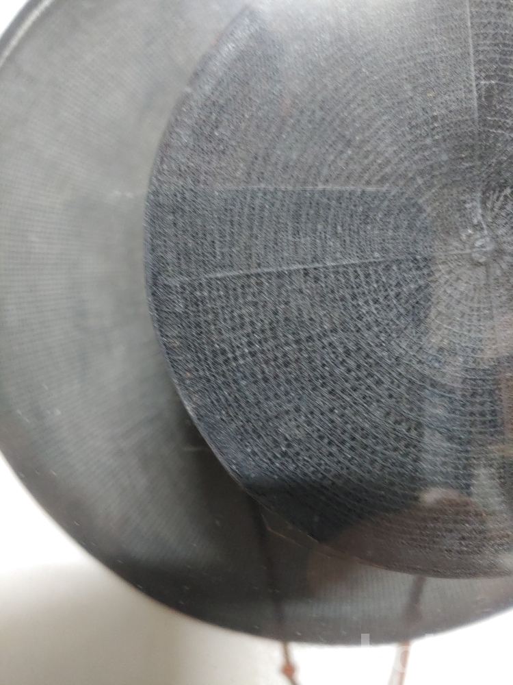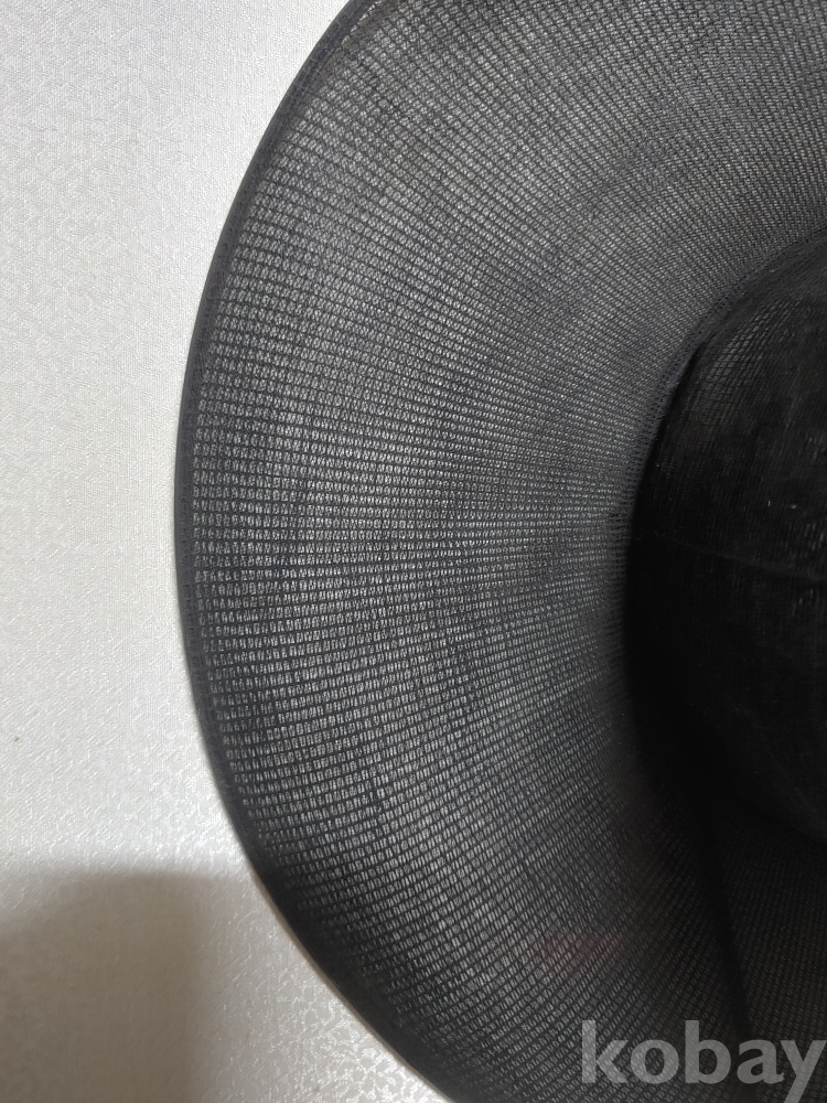 말총갓의 지름은 33cm 정도로 보이며 말총갓의 갓머리 테두리에 세월의 흔적이 있으며 갓의 오른쪽 테두리에 말총의 올이 밖으로 삐쳐져 나온 세월의 흔적이 있으오니 참고로 하시고 신중한 입찰을 부탁 드립니다