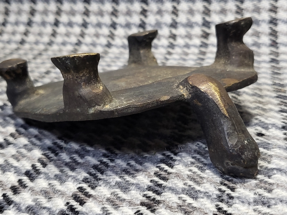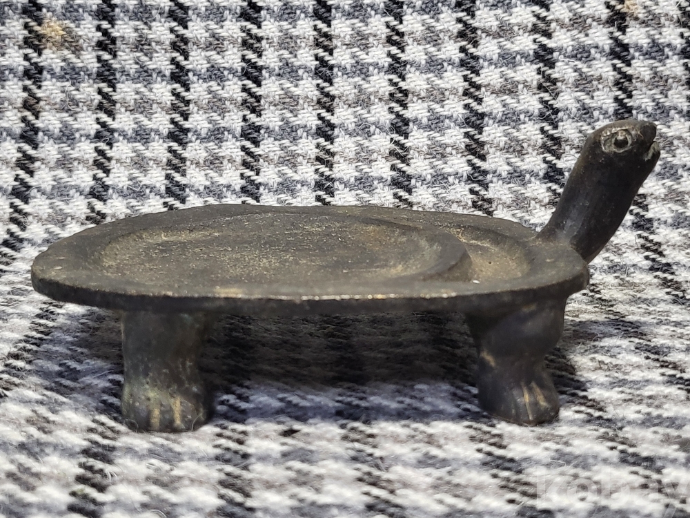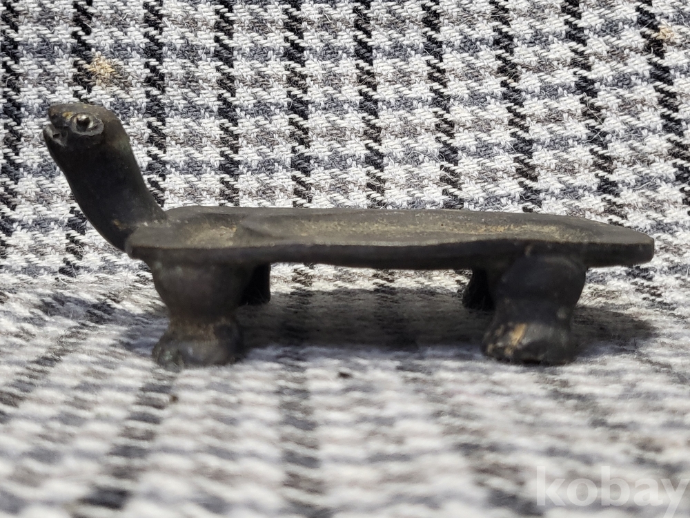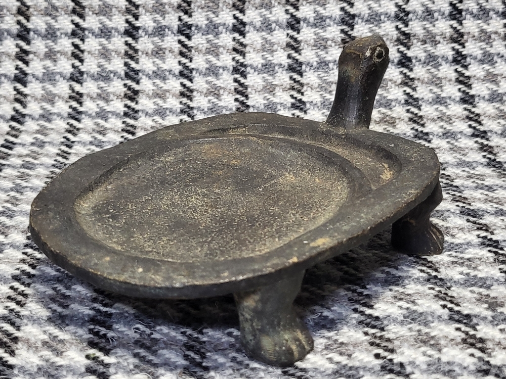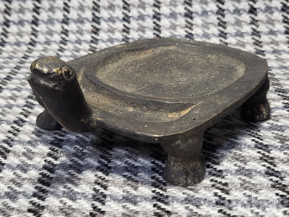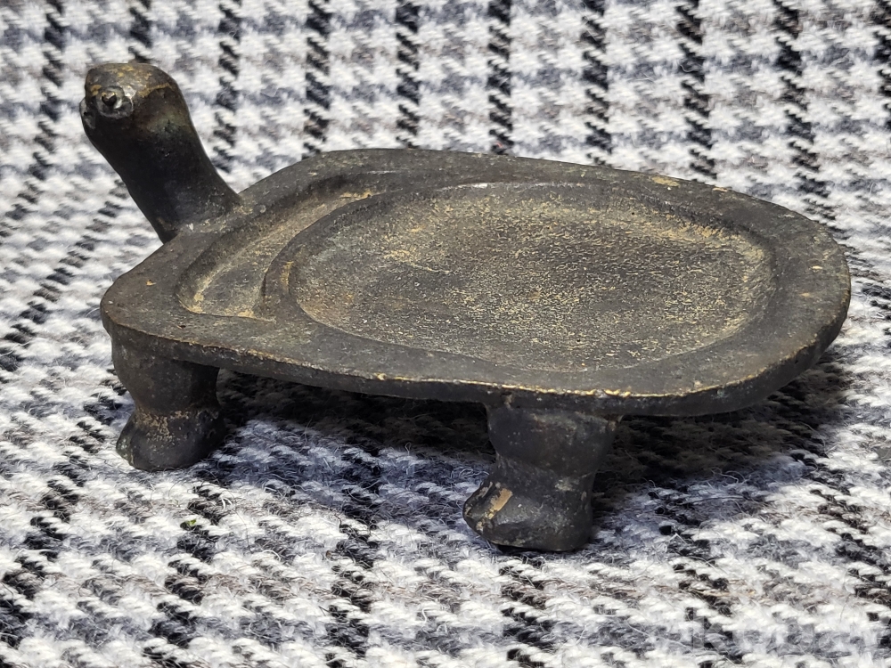 간혹 도제즉 토기혹은 도자기와 철주물재질로 만들어진 유사한 형태의 거북형 일월연이 남아있지만 동제 벼루는 사례를 찾기힘들다 생각합니다.