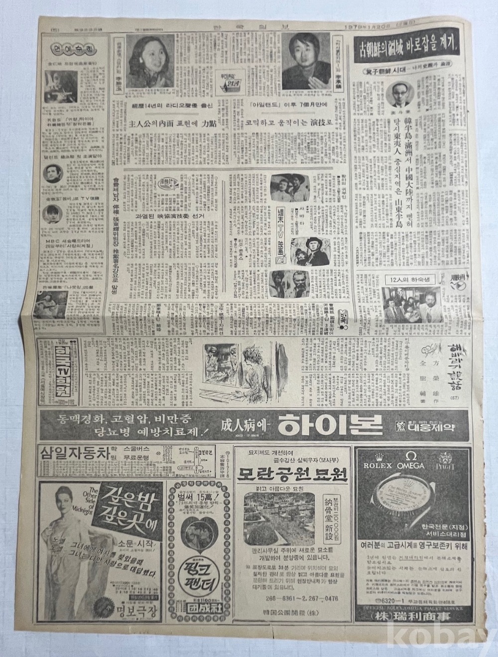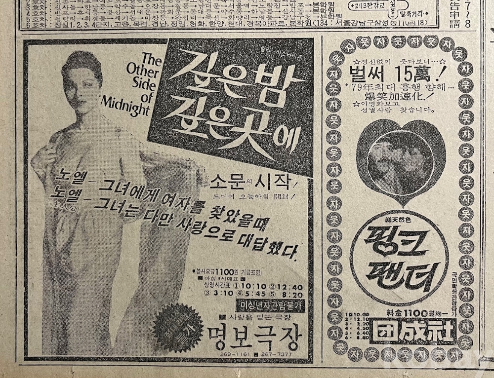 영화 광고가 실린 1979년 한국일보 낱장입니다.