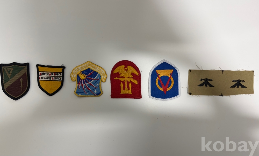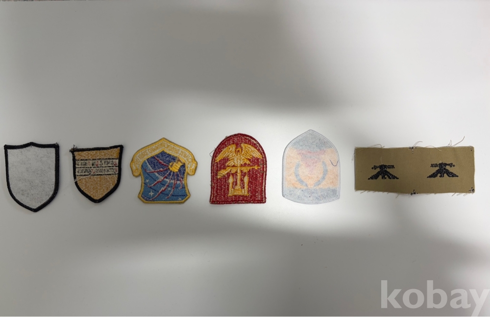 군복이나 군용 장비에 부착되는 다양한 군용 패치 또는 부대 표지(부대 마크)입니다.