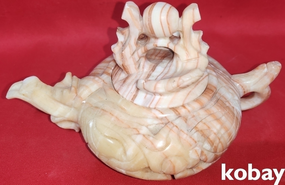 색감이 화려한 옥조각 용문양 다관(茶罐)입니다,