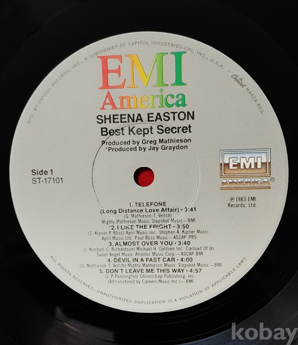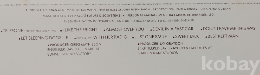 팝 락 / Sheena Easton 앨범입니다 / 트랙은 별도로 제공합니다 / Nm/ 미국