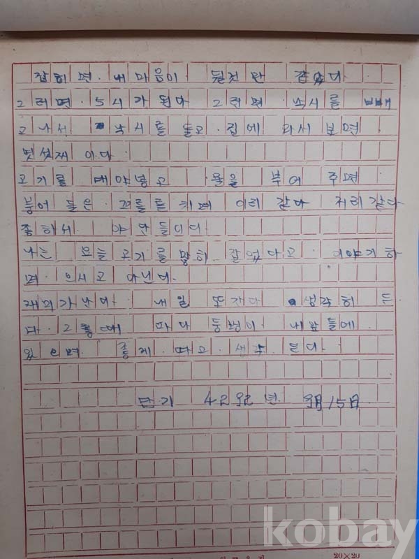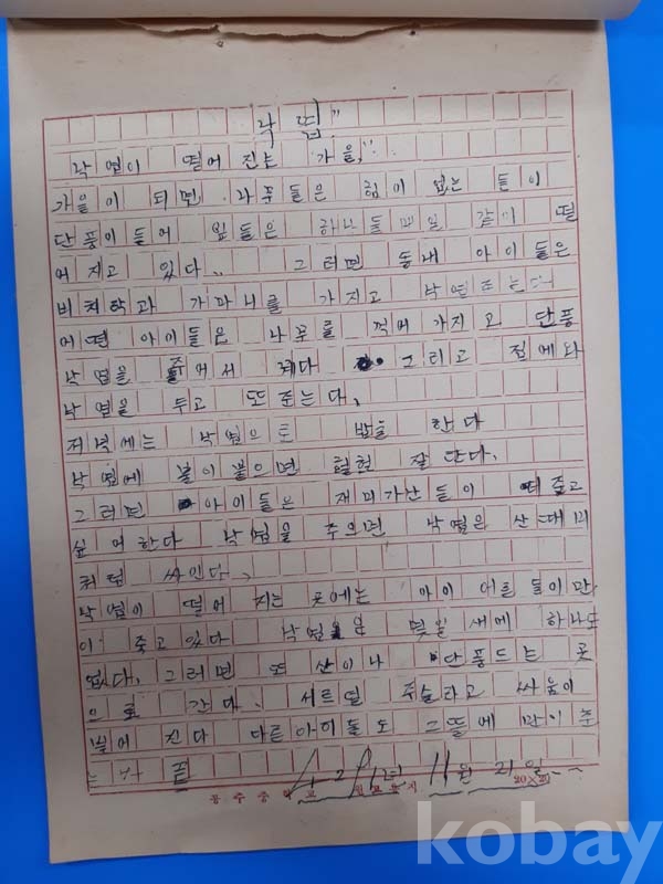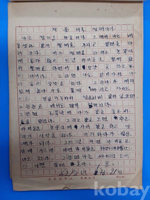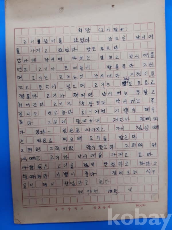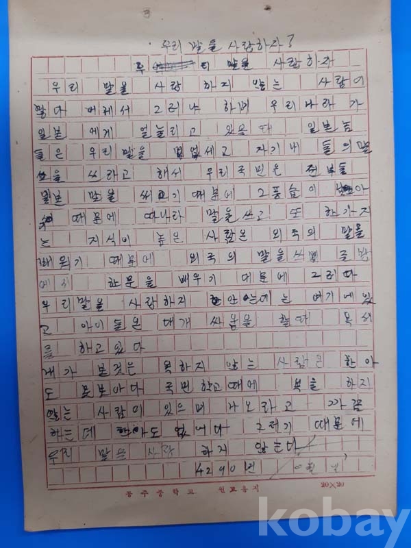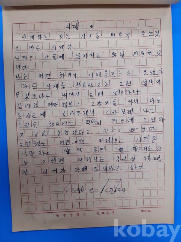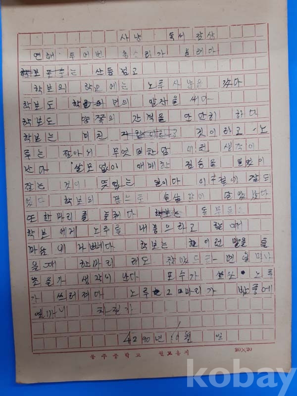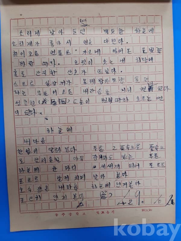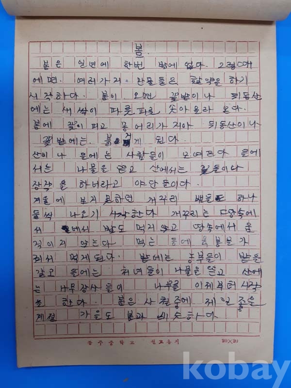 **** 공주중학교 나의문집 2부/공주중학교 원고지에 직접 쓴 것임/'50년대 정도로 추정