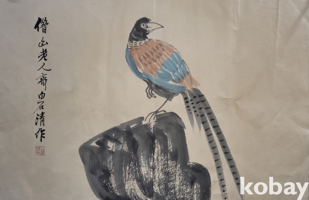 중국화가 제백석 수결이 보이는 종이에 채색된 화첩에서 떨어진 그림입니다,
