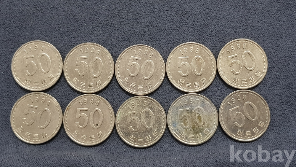 *천원경매* 특년도 1998년 50원 / 50주 사용제 10점 일괄 [ 화폐 / 주화 / 현행주화 / 한국은행 ] #41(주)-1120 #HH #CO