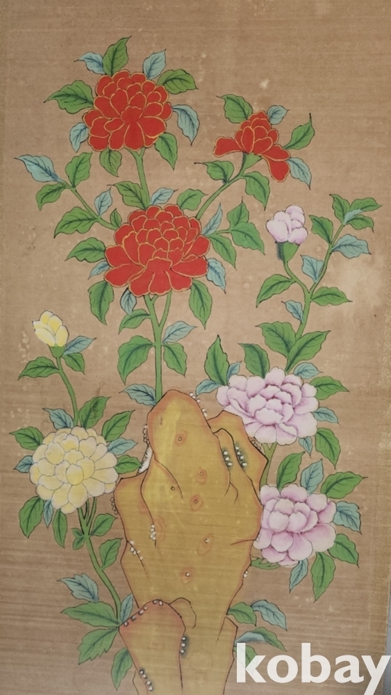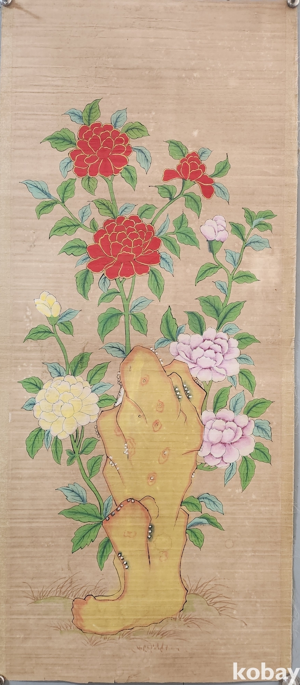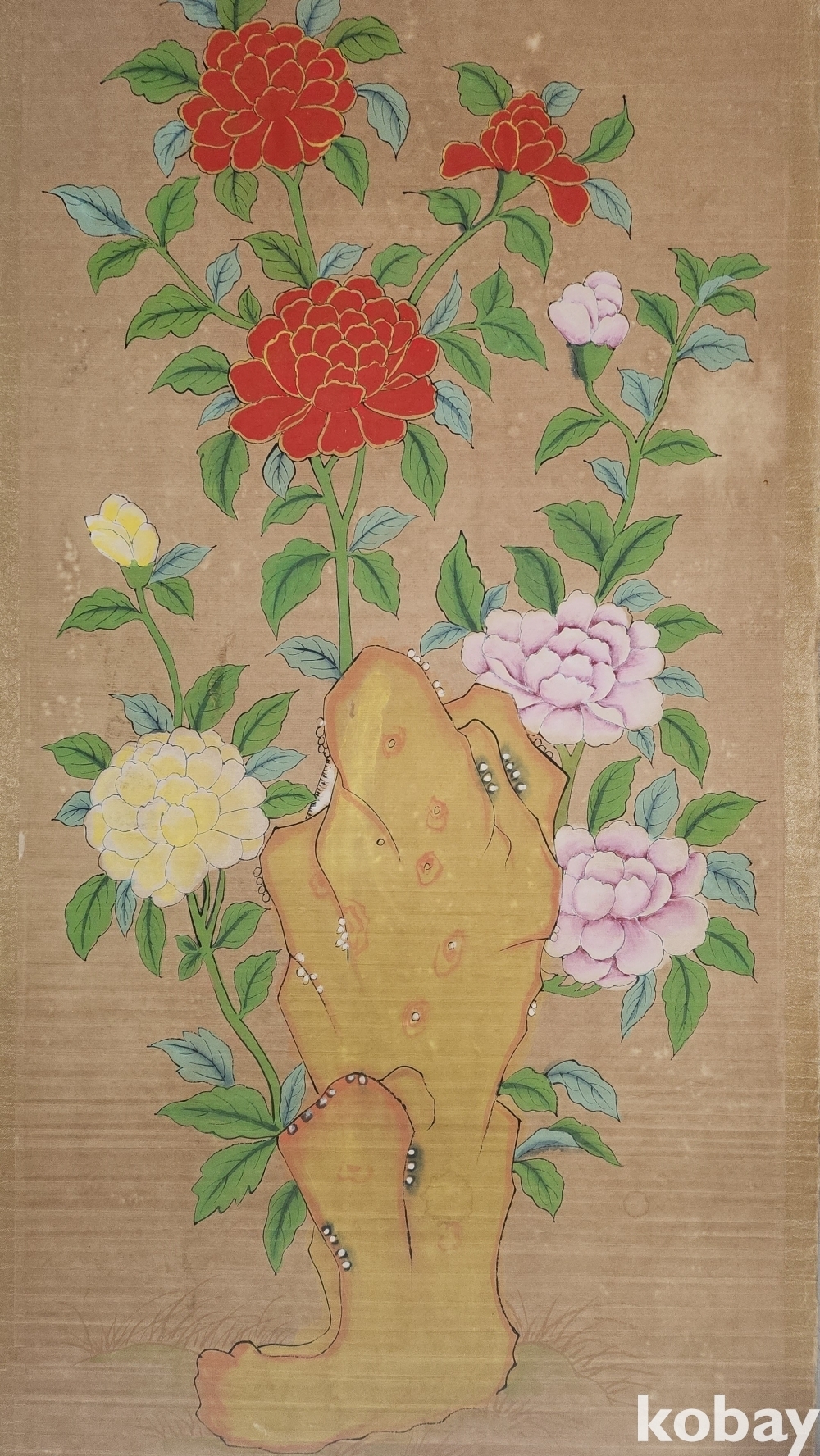 구한말 연대 갖춘 괴석 ( 怪石) 에 목단화 (牧丹花) 그림입니다,