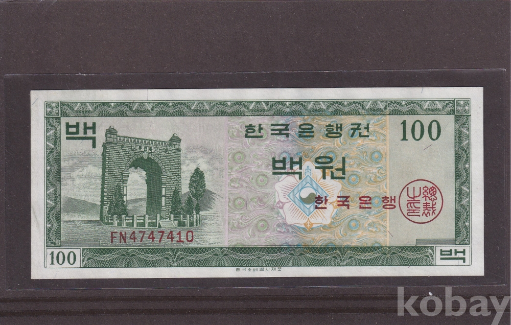 -귀함- 한국은행 1962년 영제 백원 FN기호 준미(+)지폐