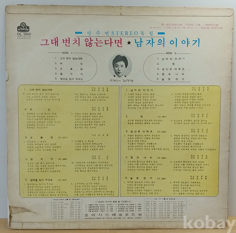 방주연 (그대 변치 않는다면 / 남자의 이야기) 1971년 오아시스레코드
