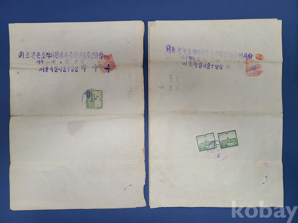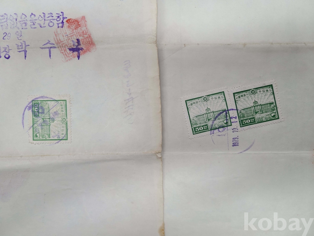 [수입증지] 서울특별시 수입증지(50원) 첩부 자료 2부