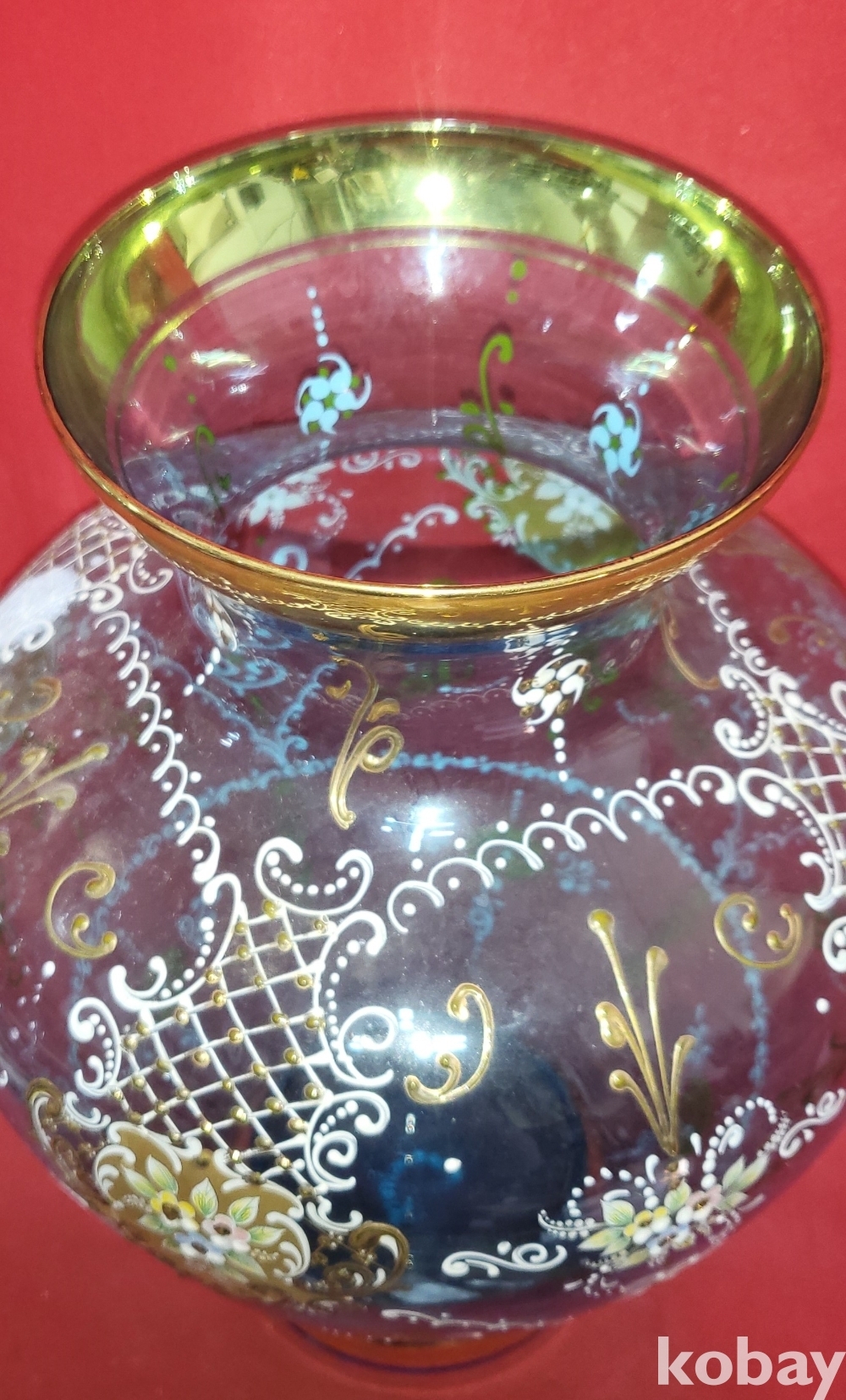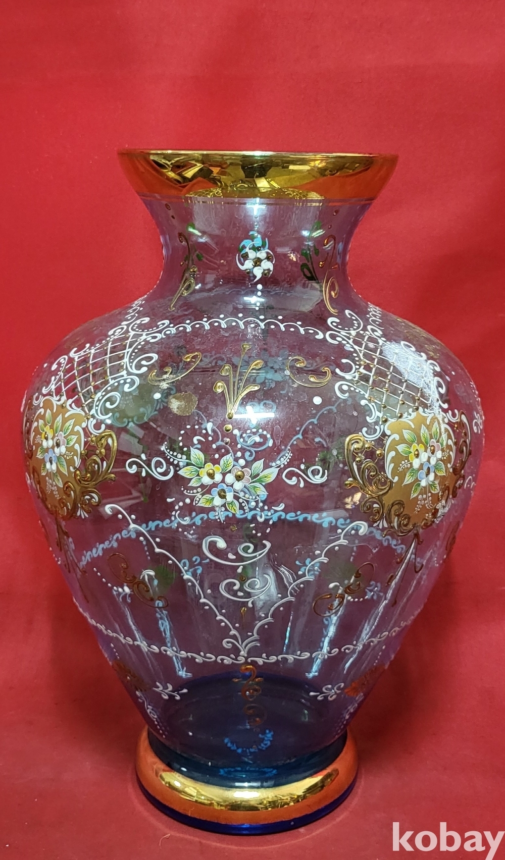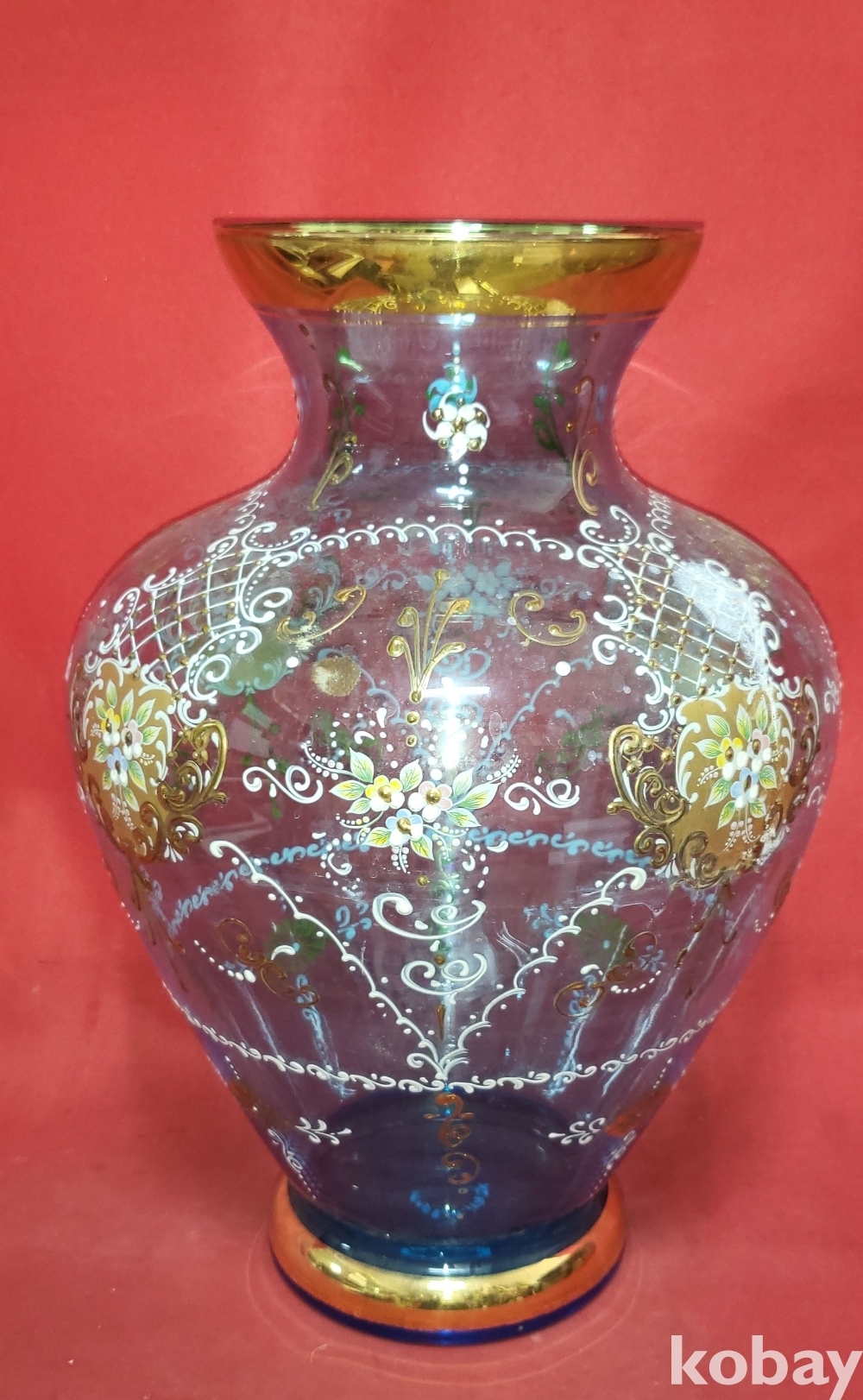유럽에서 제작된 금채 양각 꽃문양 유리병입니다,