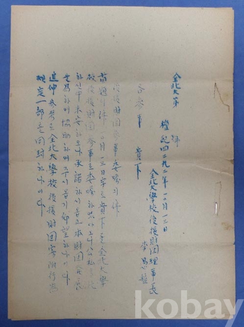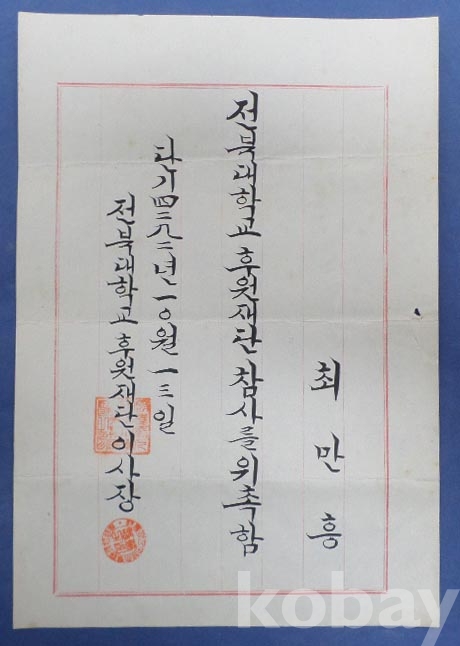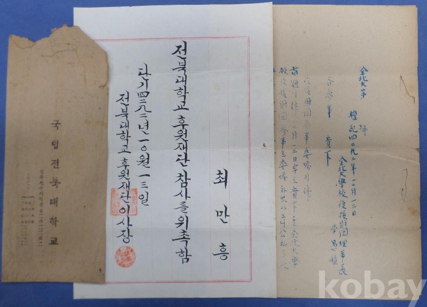 **** 1959년 전북대학교 후원재단 참사 위촉장 및 문서, 봉투 등