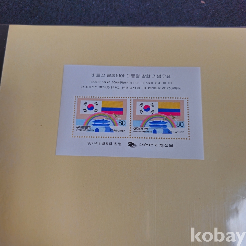 (((우표쉬트))) 1987년 바르꼬 콜롬비아 대통령 방한기념우표 쉬트