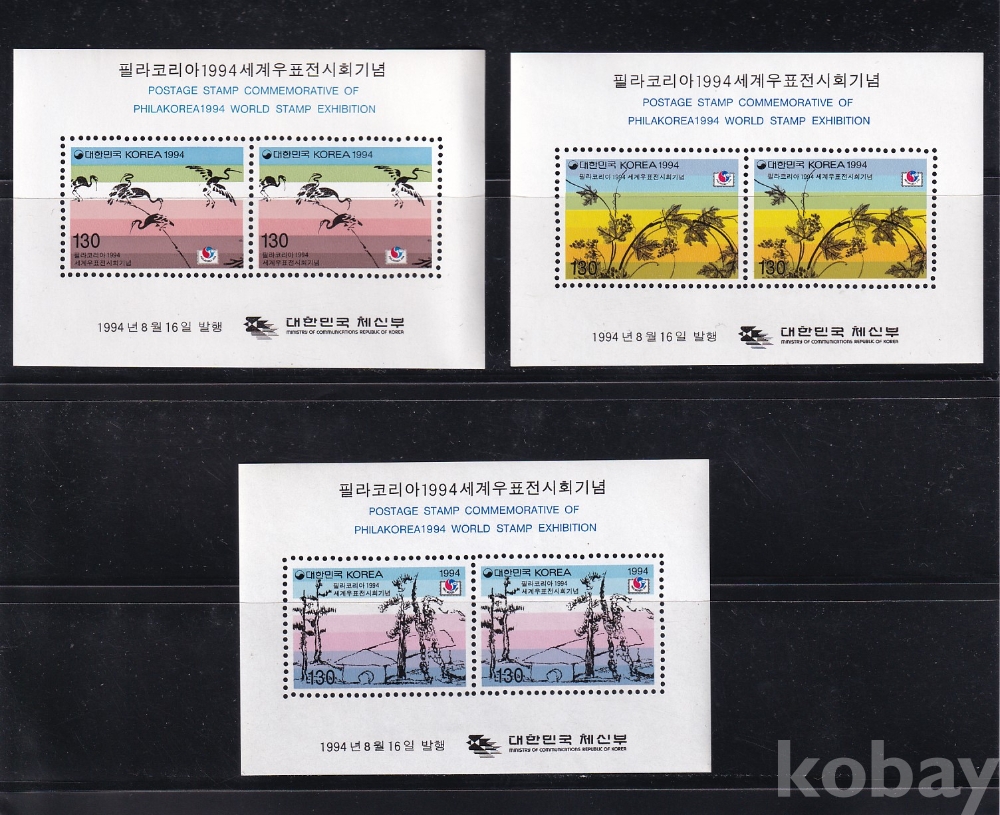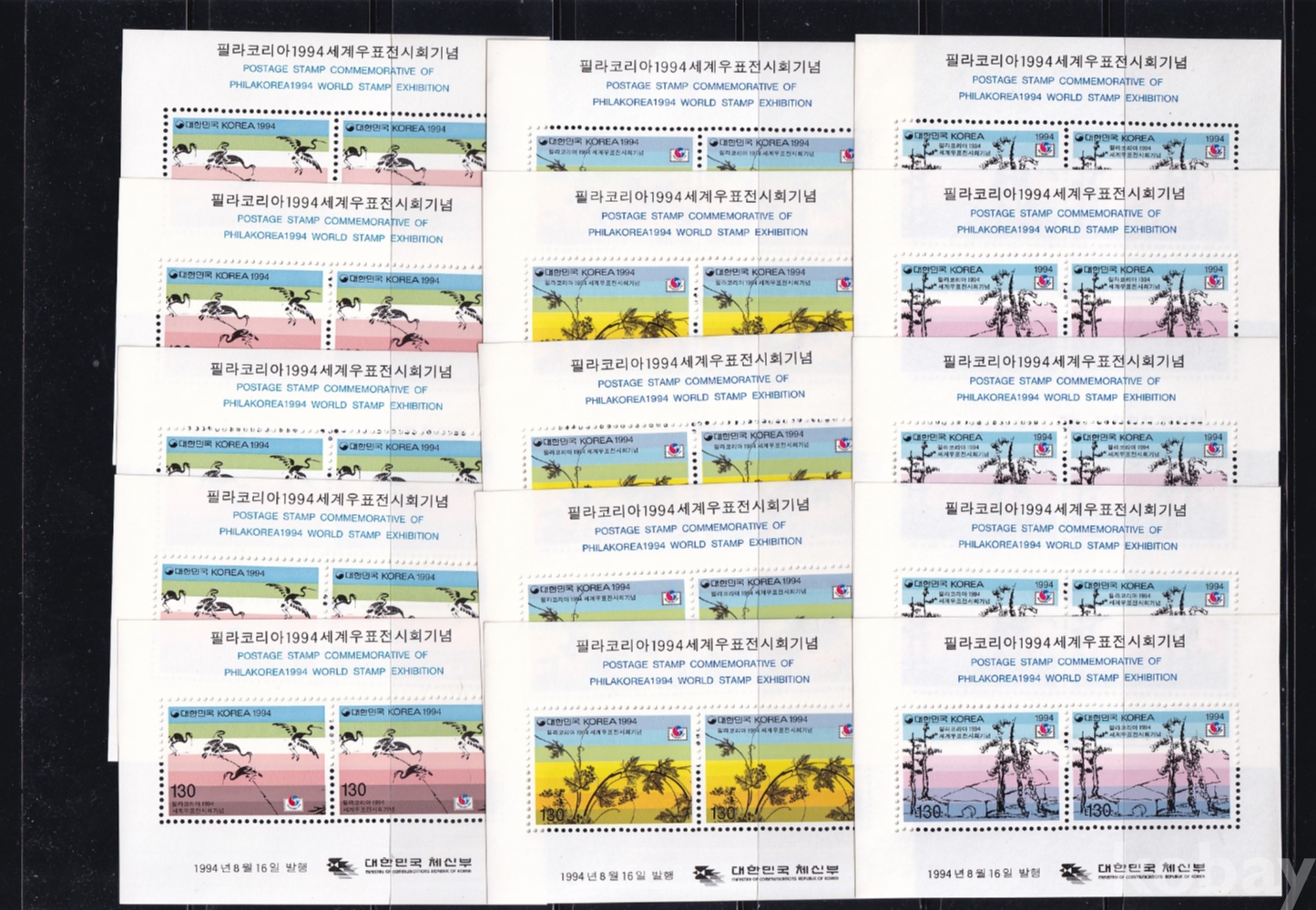 - 미사용 필라코리아 1994 세계우표전시회 시트 3종 15장 모음