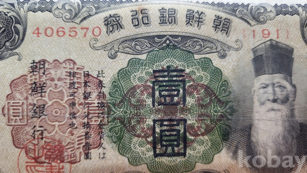 이 지폐는 조선총독부 산하의 조선은행에서 발행되었으며,