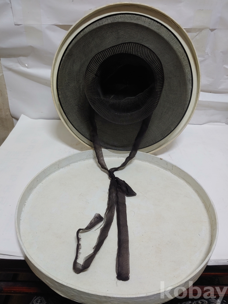 말총 갓의 테두리에 6.5cm 정도에 세월의 흔적이 있으나 상태 아주 깨끗 함...지름 32.5cm * 이마(머리둘에) 14.5cm