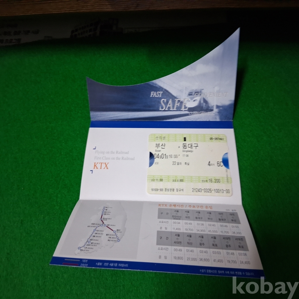 한국철도 KTX개통기념 특실승차권 사용제 부산----동대구