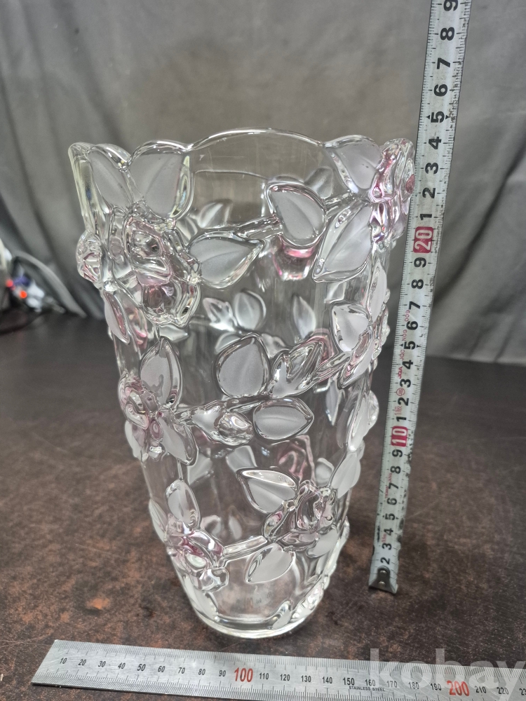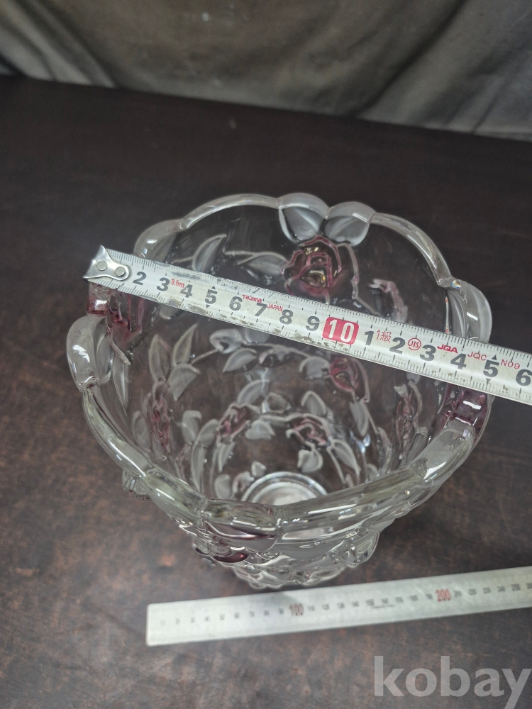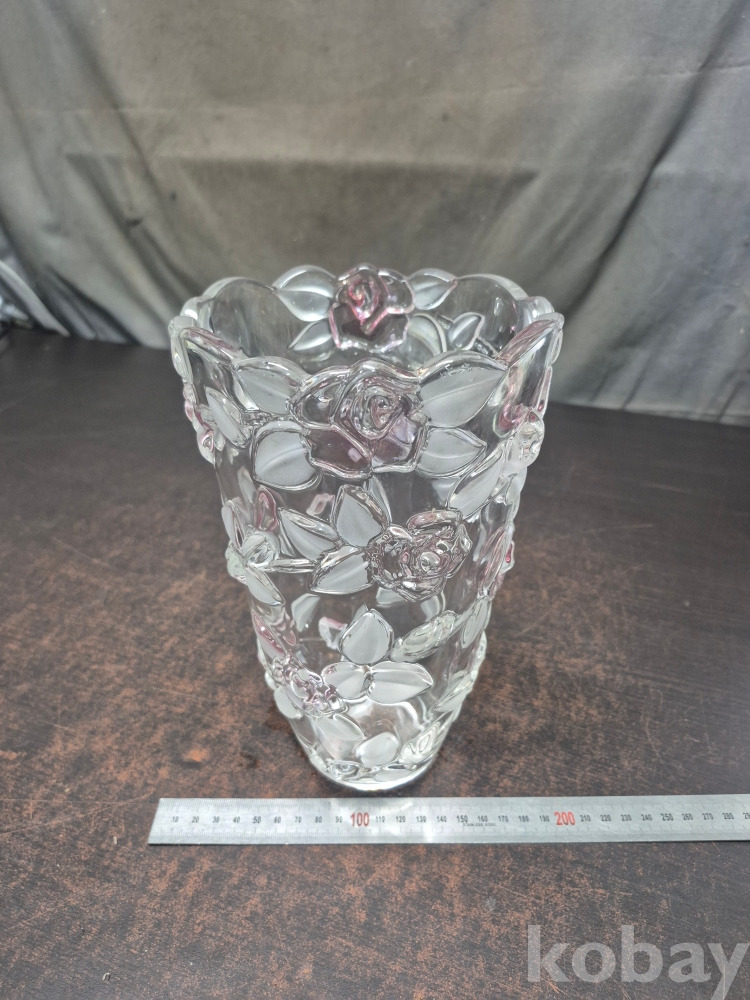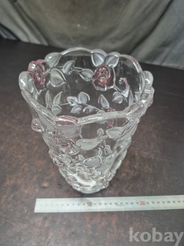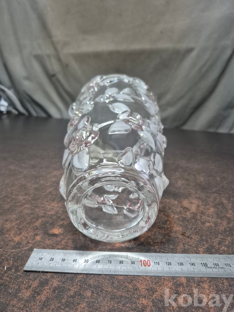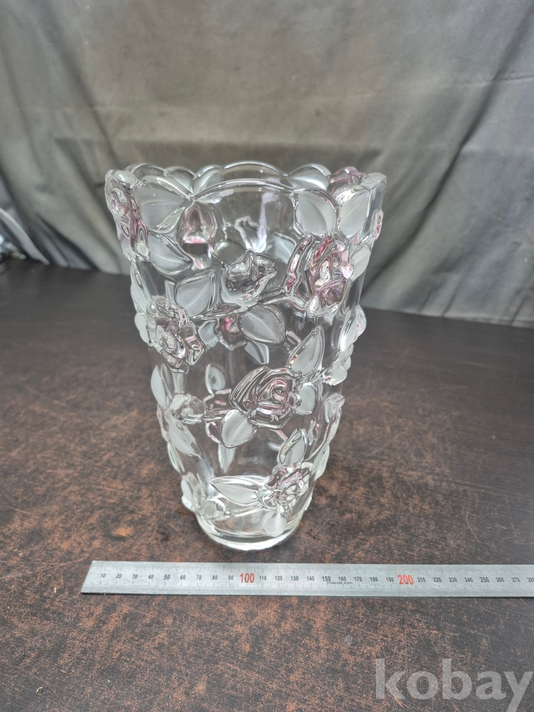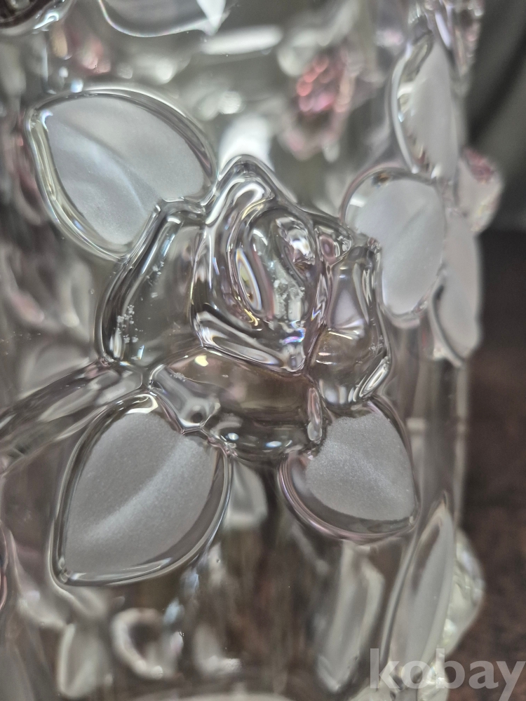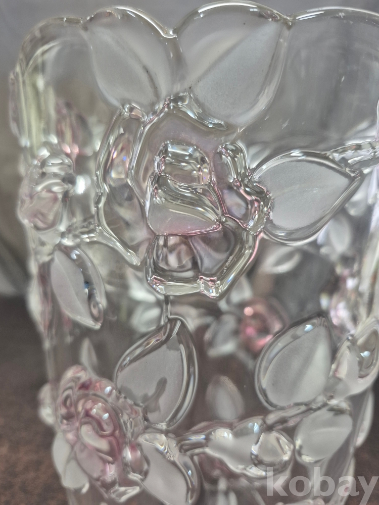 유리를 핸드메이드로 만들고 장미를 표현한 작품 유리 화병 한점 15.5*15.5*24