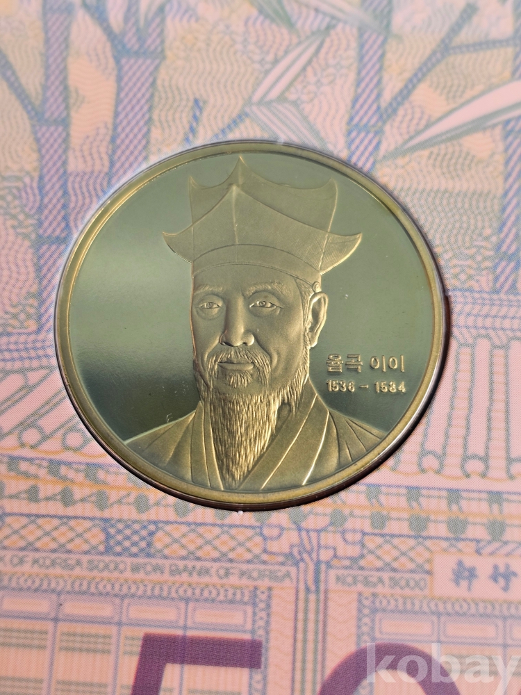 5000원 지폐에 들어 가는 율곡 이이의 초상 메달입니다.